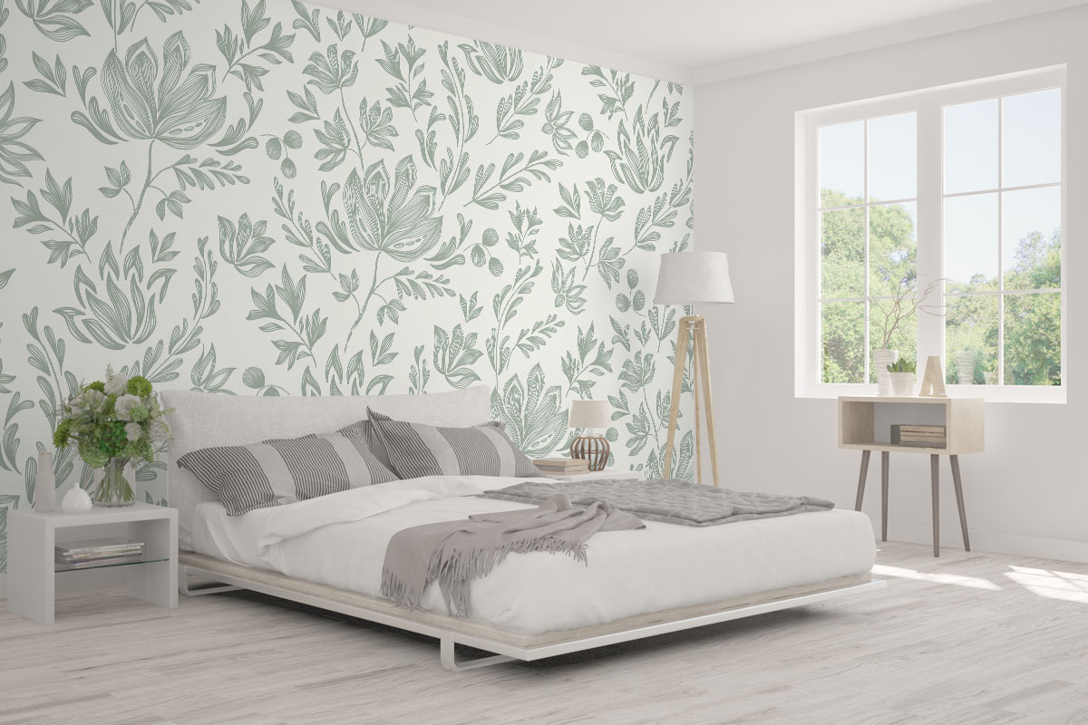Wil je de muur combineren met verf? We hebben drie Flexa Pure kleuren geselecteerd die perfect matchen met dit fotobehang Lotus van Morris. Zo creëer je eenvoudig een harmonieus interieur.