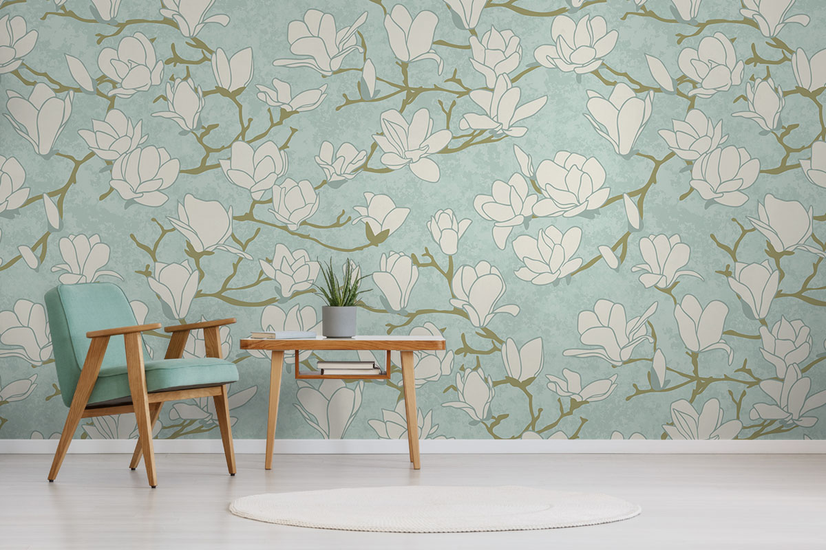 Wil je de muur combineren met verf? We hebben drie Flexa Pure kleuren geselecteerd die perfect matchen met dit fotobehang Magnolia in oosterse stijl. Zo creëer je eenvoudig een harmonieus interieur.