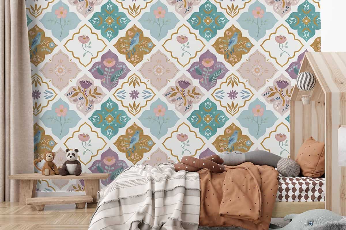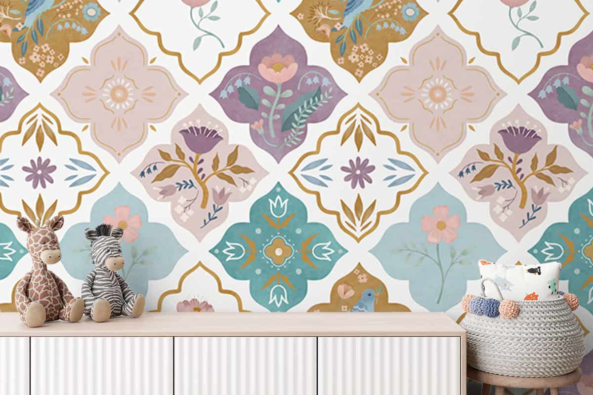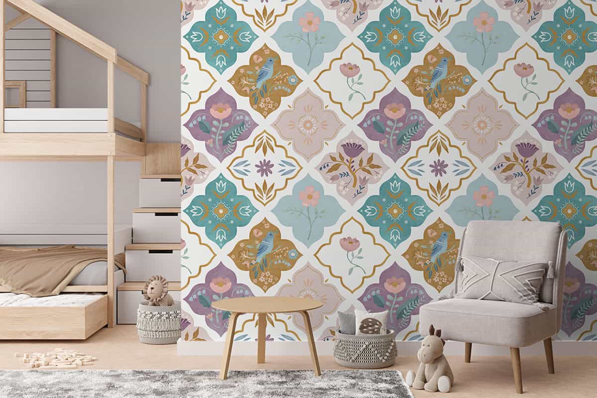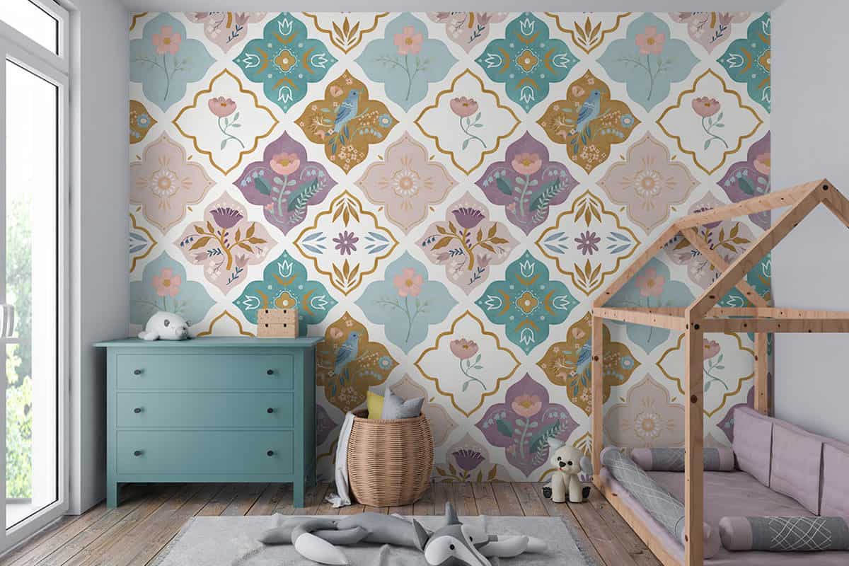 Wil je naast het behang ook een muur in de baby- of kinderkamer verven? Wij hebben alvast 3 Flexa Pure kleuren geselecteerd die perfect passen bij dit fotobehang Marokkaanse tegeltjes.