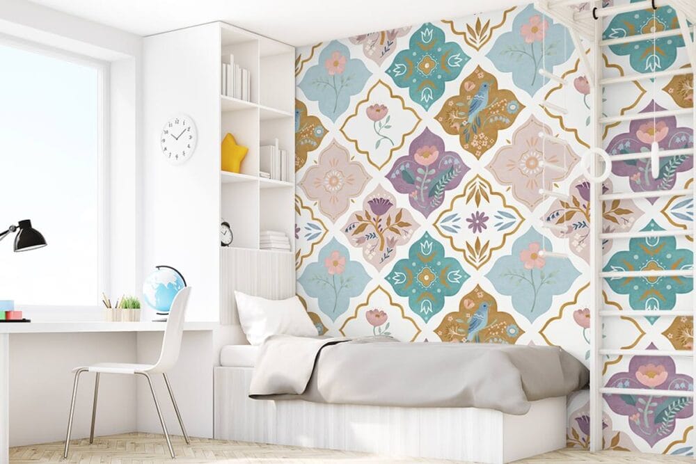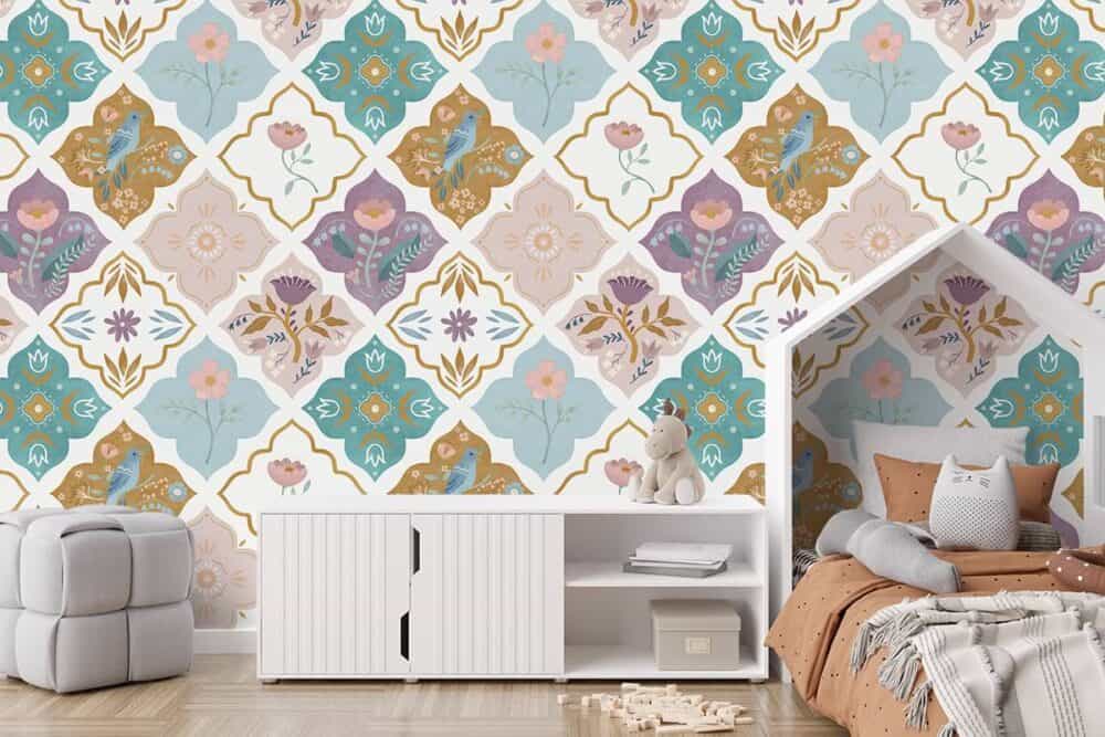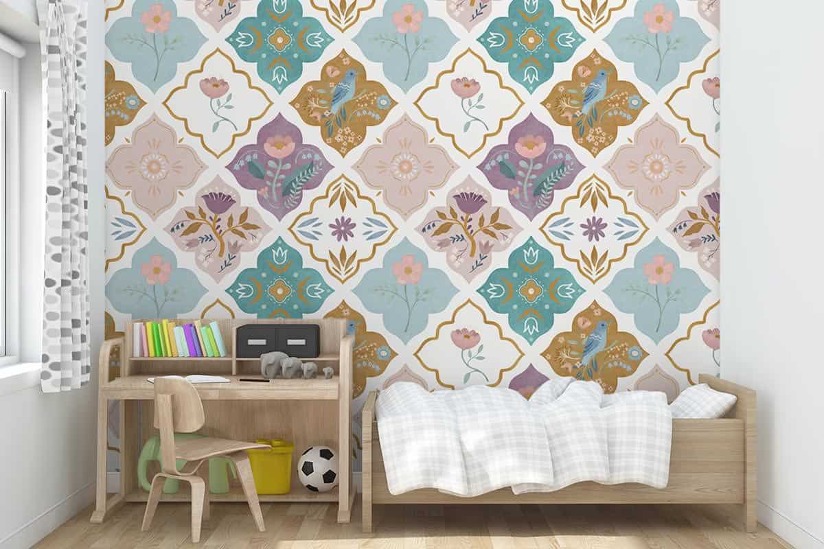 Wil je naast het behang ook een muur in de baby- of kinderkamer verven? Wij hebben alvast 3 Flexa Pure kleuren geselecteerd die perfect passen bij dit fotobehang Marokkaanse tegeltjes.
