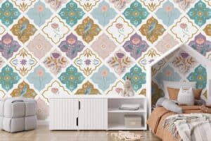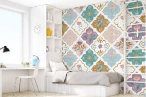 Jouw design Marokkaanse tegeltjes wordt geprint op hoogwaardig duurzaam vliesbehang van premium kwaliteit. Dit stevige behang (200 g/m²) is krasvast, robuust en blijft jarenlang mooi — perfect voor in de kinderkamer, babykamer of speelkamer. Je kunt het behang helemaal op maat laten maken, zodat het ontwerp precies past op jouw muur. Dankzij de gladde afwerking en strakke structuur komt elk detail van het ontwerp perfect tot zijn recht.