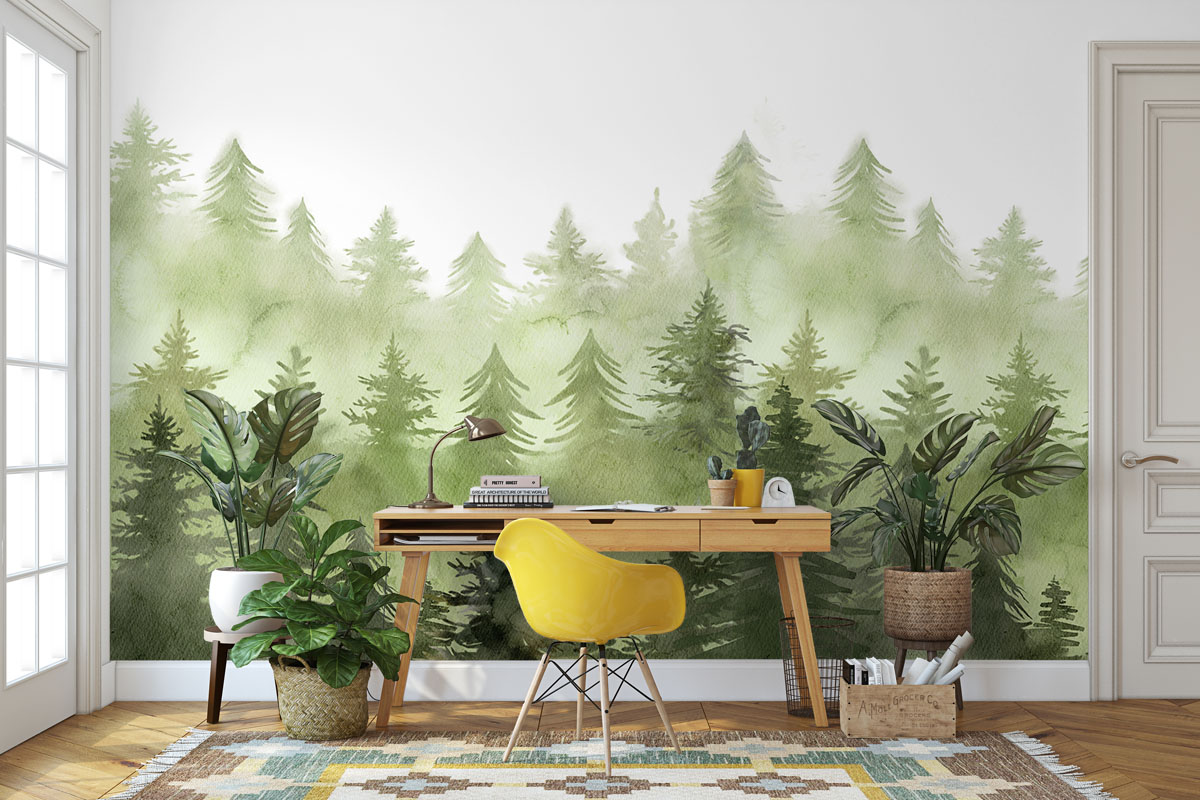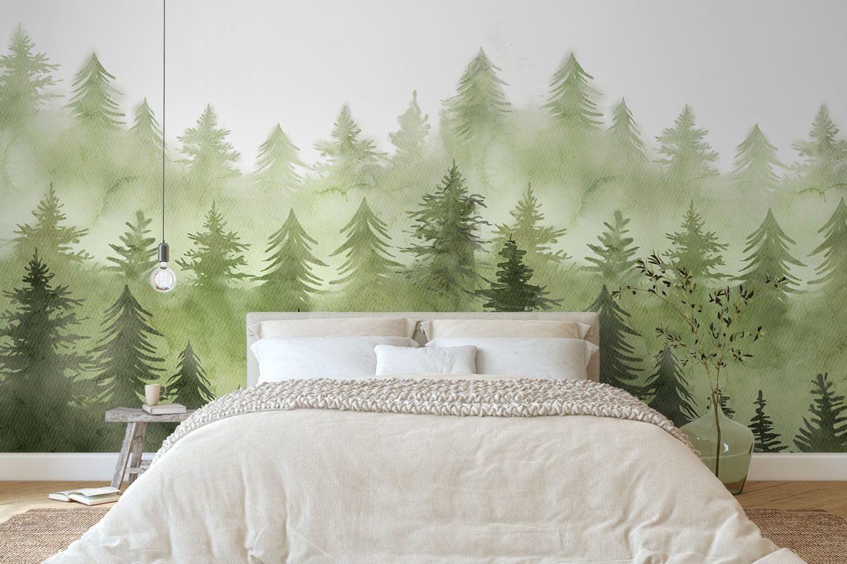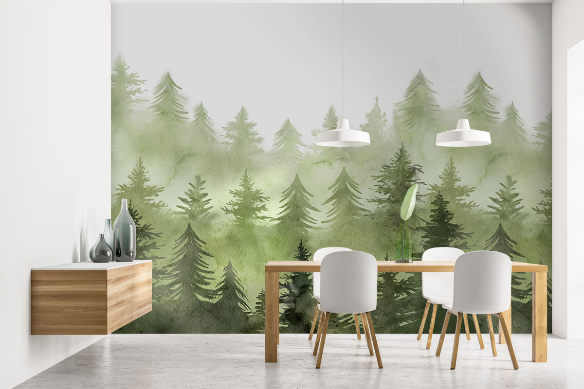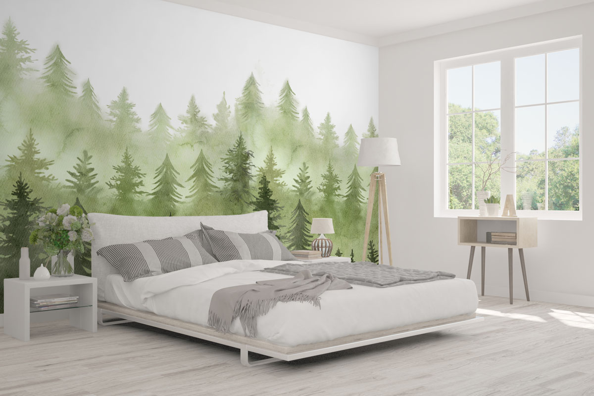 Wil je de muur combineren met verf? We hebben drie Flexa Pure kleuren geselecteerd die perfect matchen met dit fotobehang Mystiek naaldbos. Zo creëer je eenvoudig een harmonieus interieur.