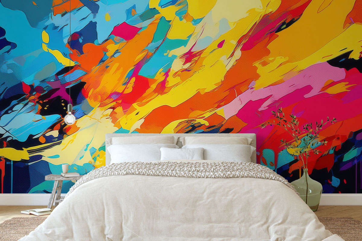 Jouw design Neon spatten wordt geprint op hoogwaardig vliesbehang van premium kwaliteit. Dit stevige behang (200 g/m²) is duurzaam, krasvast en behoudt jarenlang zijn kleur en structuur — perfect voor elke woonruimte, van woonkamer tot slaapkamer of kantoor. Het fotobehang wordt volledig op maat gemaakt, zodat het ontwerp naadloos aansluit op jouw muur. Dankzij de gladde afwerking en strakke structuur komen kleuren en details prachtig tot leven.