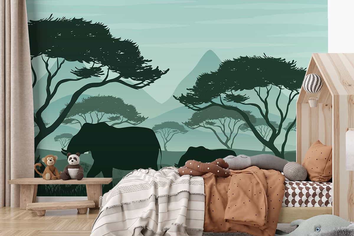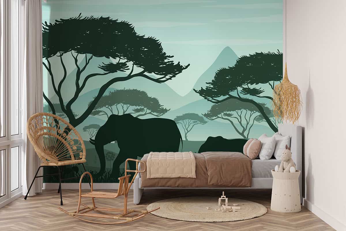 Wil je naast het behang ook een muur in de baby- of kinderkamer verven? Wij hebben alvast 3 Flexa Pure kleuren geselecteerd die perfect passen bij dit fotobehang Olifanten landschap.