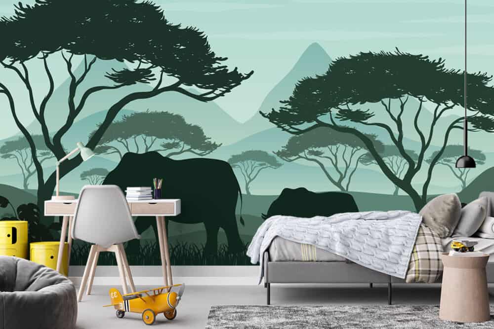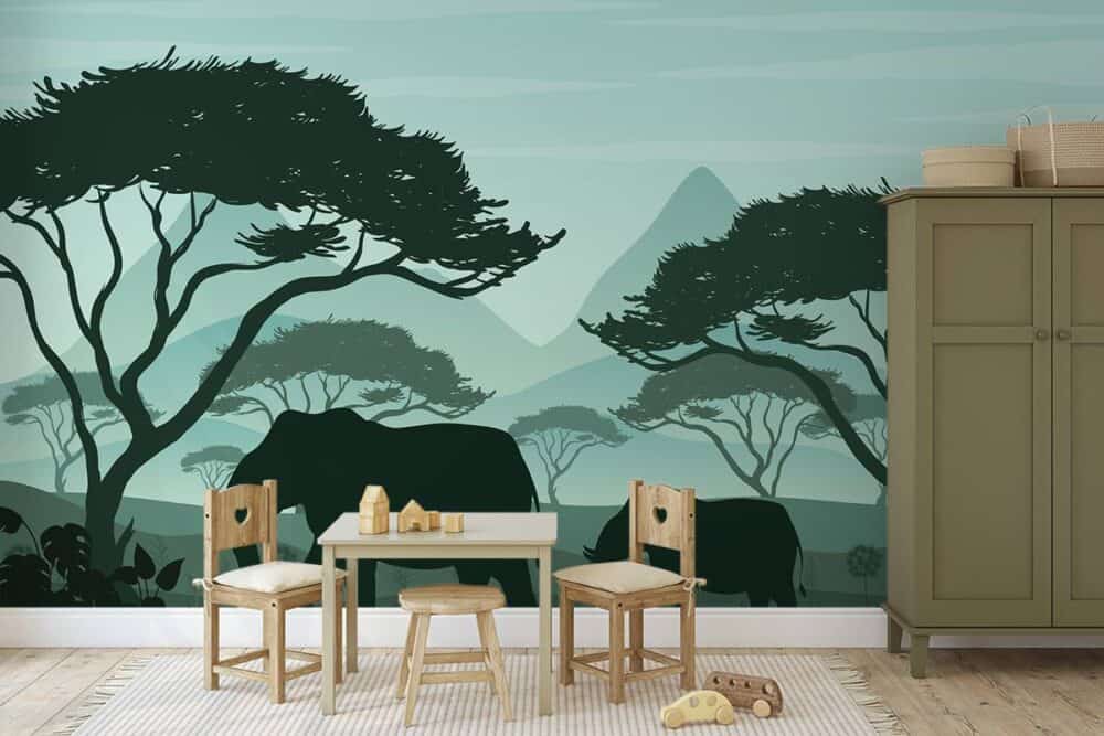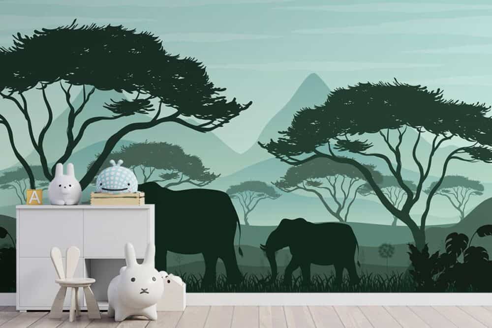 Wil je naast het behang ook een muur in de baby- of kinderkamer verven? Wij hebben alvast 3 Flexa Pure kleuren geselecteerd die perfect passen bij dit fotobehang Olifanten landschap.