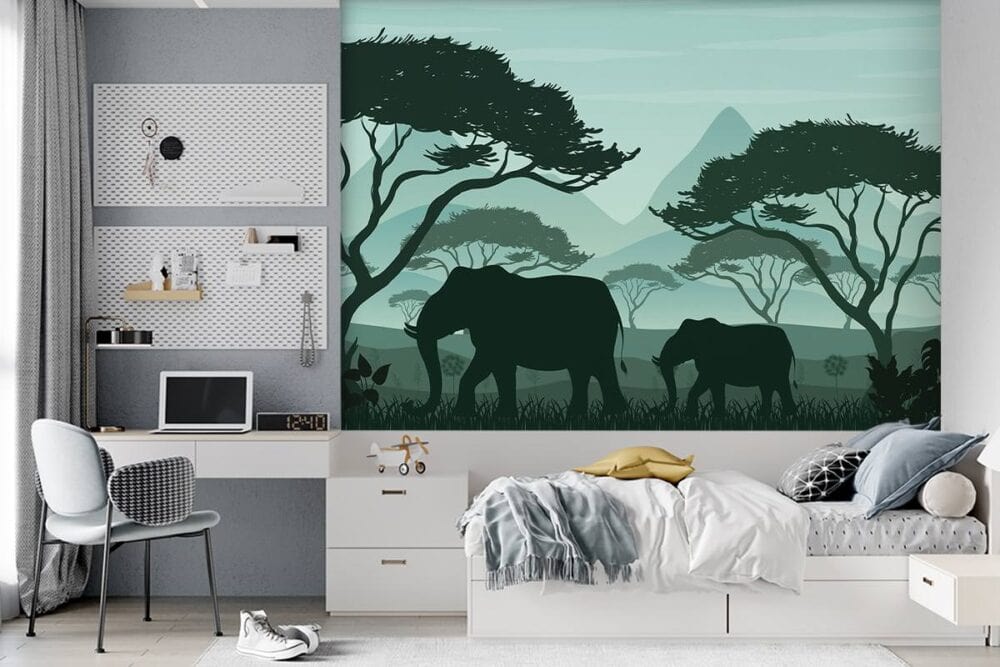 Jouw design Olifanten landschap wordt geprint op hoogwaardig duurzaam vliesbehang van premium kwaliteit. Dit stevige behang (200 g/m²) is krasvast, robuust en blijft jarenlang mooi — perfect voor in de kinderkamer, babykamer of speelkamer. Je kunt het behang helemaal op maat laten maken, zodat het ontwerp precies past op jouw muur. Dankzij de gladde afwerking en strakke structuur komt elk detail van het ontwerp perfect tot zijn recht.