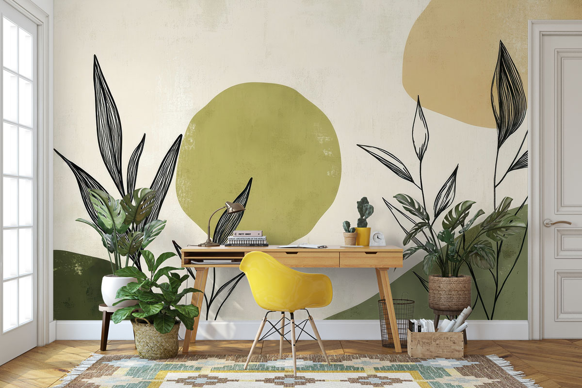 Wil je de muur combineren met verf? We hebben drie Flexa Pure kleuren geselecteerd die perfect matchen met dit fotobehang Olijf silhouet. Zo creëer je eenvoudig een harmonieus interieur.