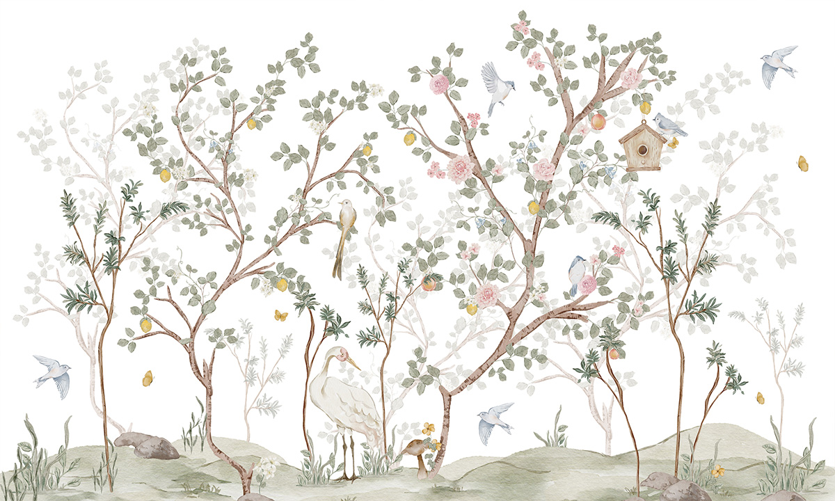 Behang – Oosterse tuin met rozen