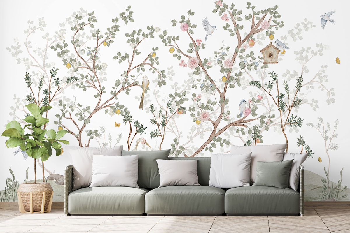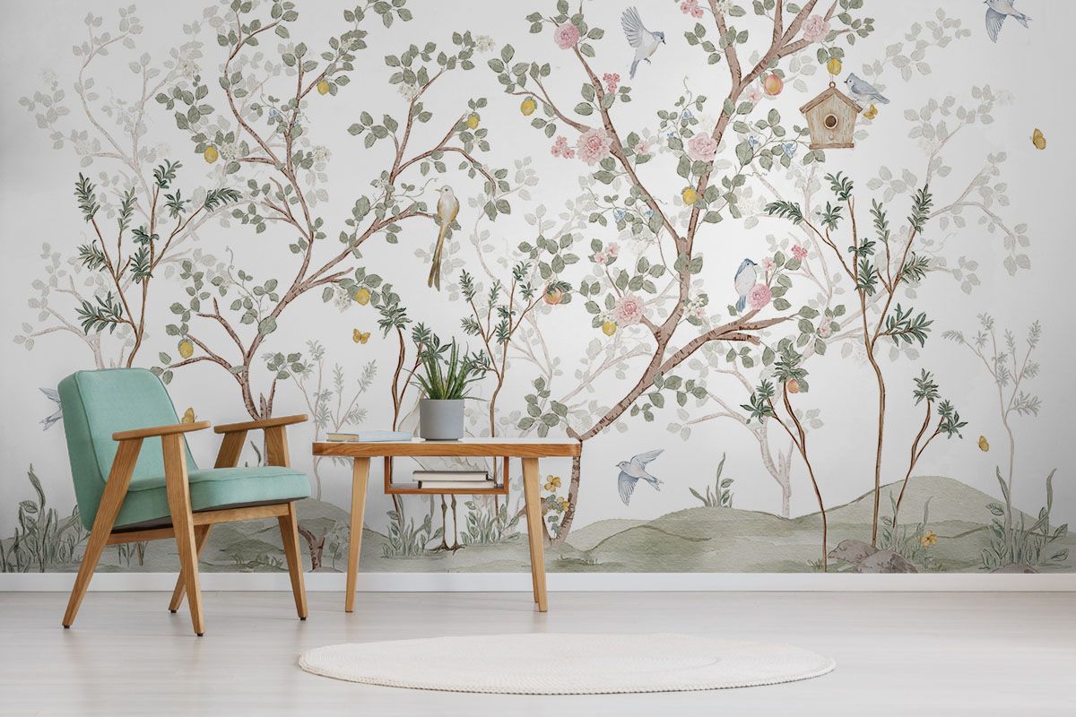 Wil je de muur combineren met verf? We hebben drie Flexa Pure kleuren geselecteerd die perfect matchen met dit fotobehang Oosterse tuin met rozen. Zo creëer je eenvoudig een harmonieus interieur.