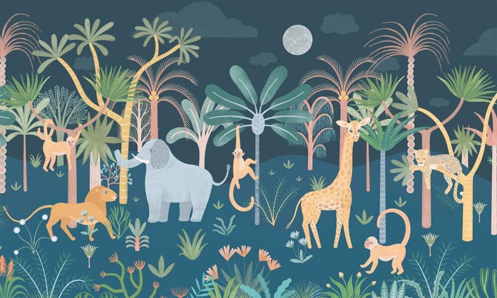 Wil je naast het behang ook een muur in de baby- of kinderkamer verven? Wij hebben alvast 3 Flexa Pure kleuren geselecteerd die perfect passen bij dit fotobehang Op de savanne bij nacht.