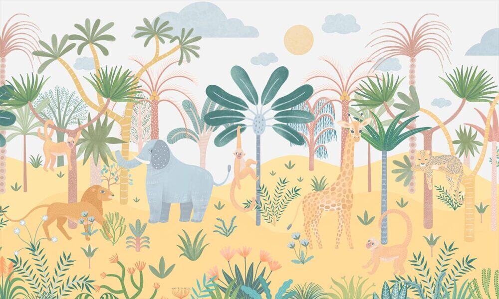 Wil je naast het behang ook een muur in de baby- of kinderkamer verven? Wij hebben alvast 3 Flexa Pure kleuren geselecteerd die perfect passen bij dit fotobehang Op de savanne in de zon.