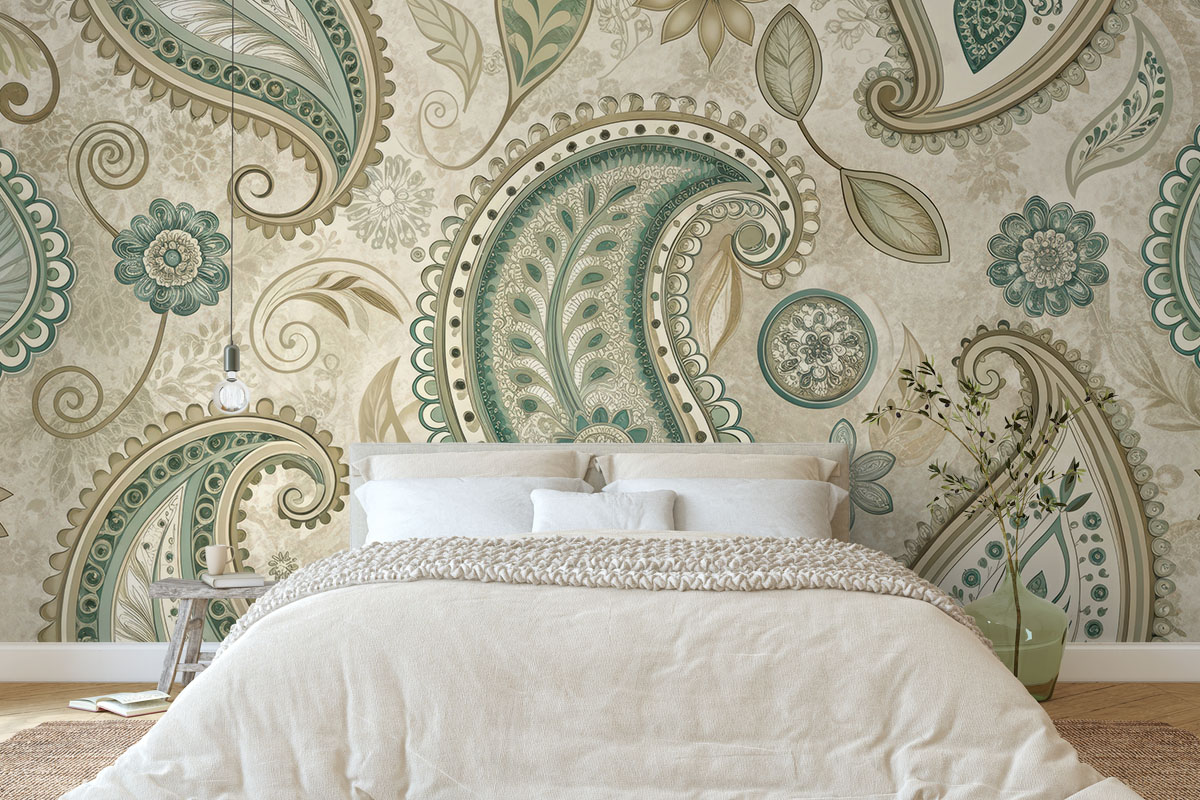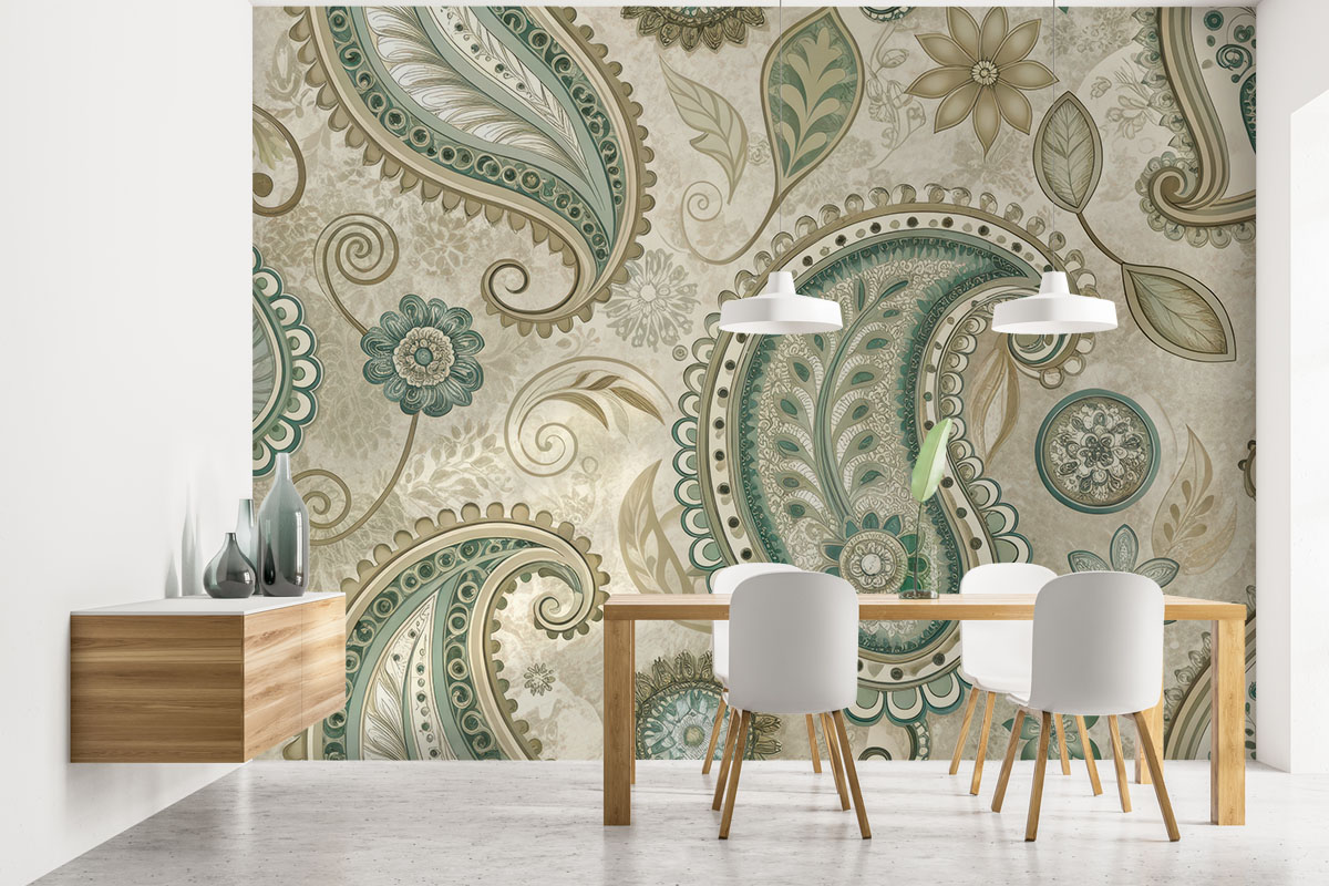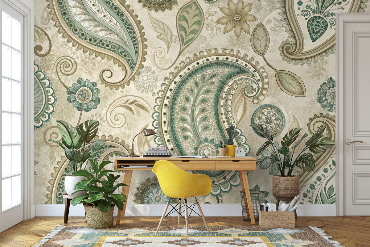 Wil je de muur combineren met verf? We hebben drie Flexa Pure kleuren geselecteerd die perfect matchen met dit fotobehang Paisley met pit. Zo creëer je eenvoudig een harmonieus interieur.