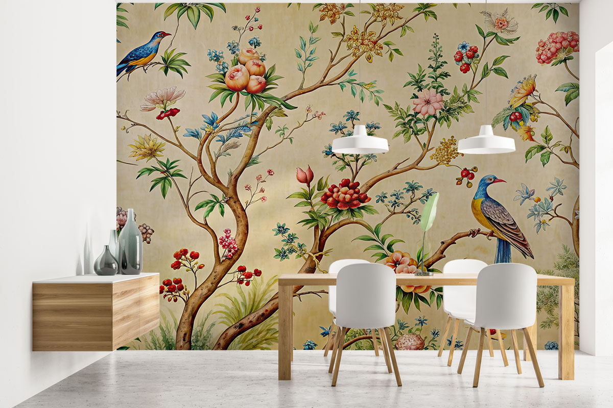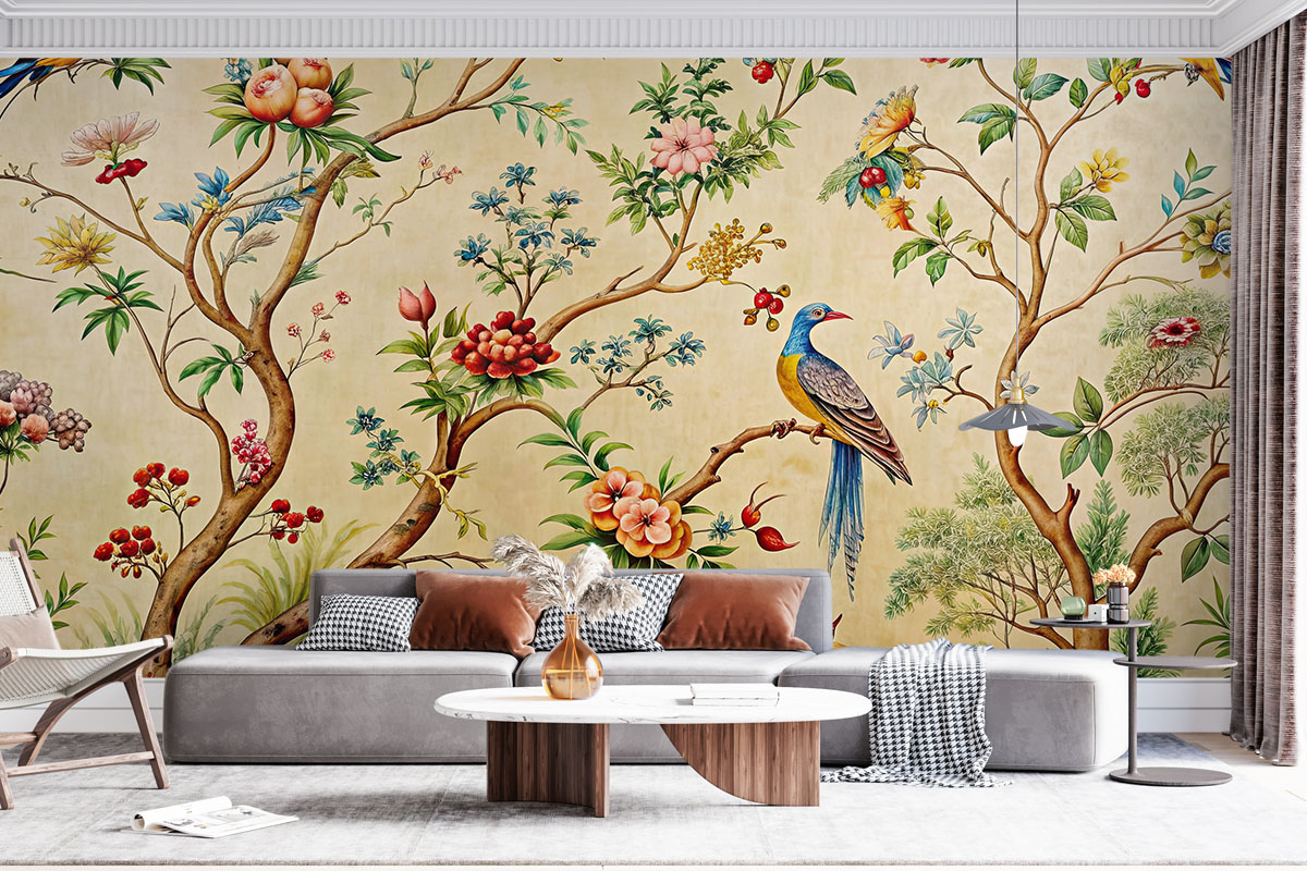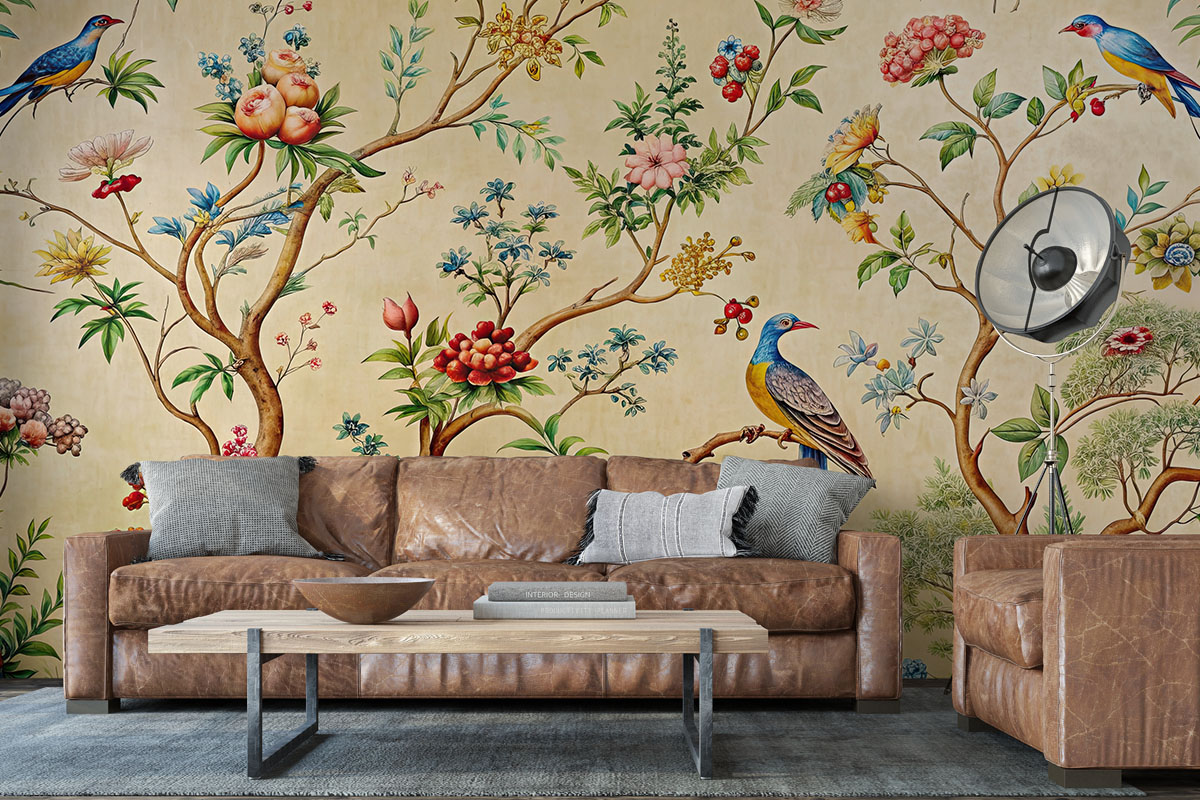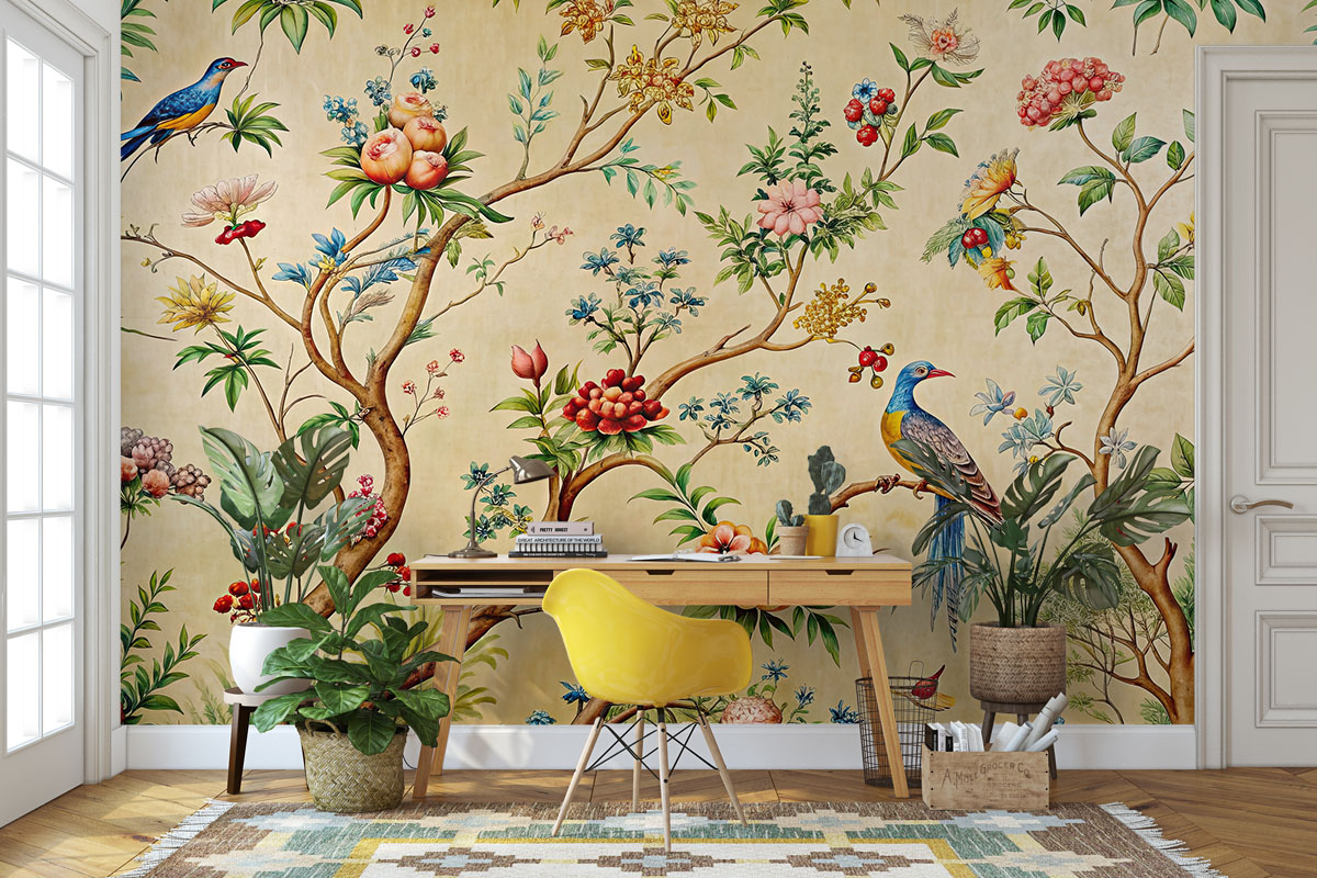 Exotische vogels en bloesems brengen een vleugje luxe en kleur in huis.