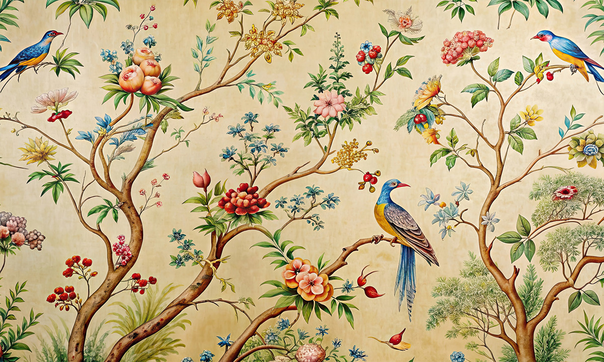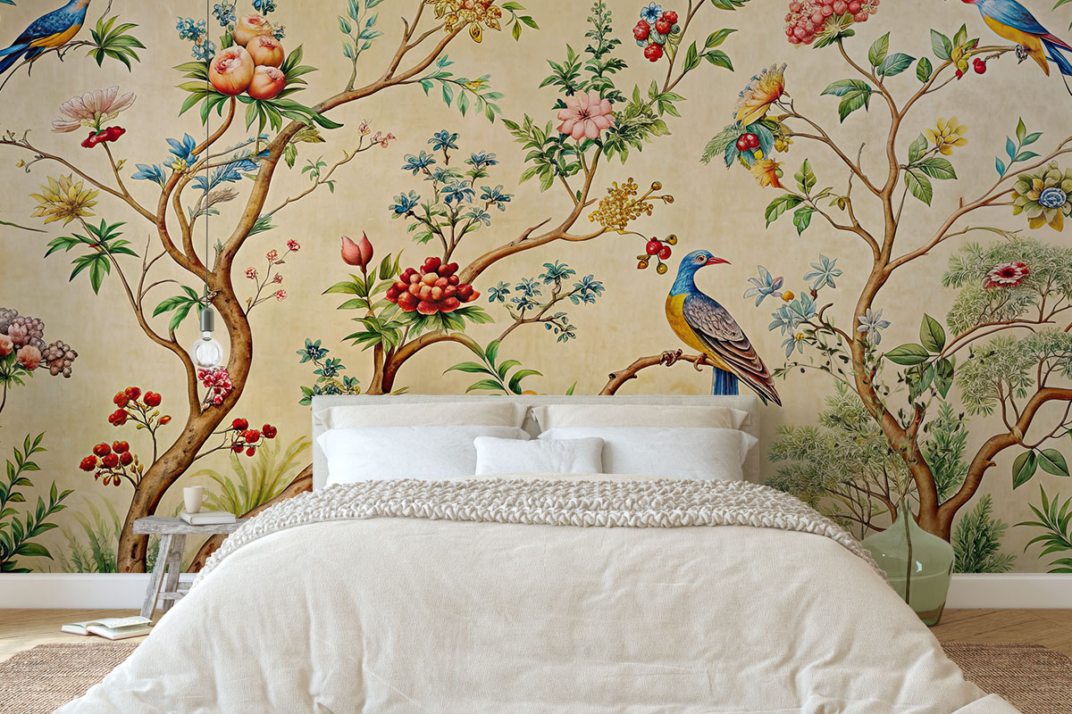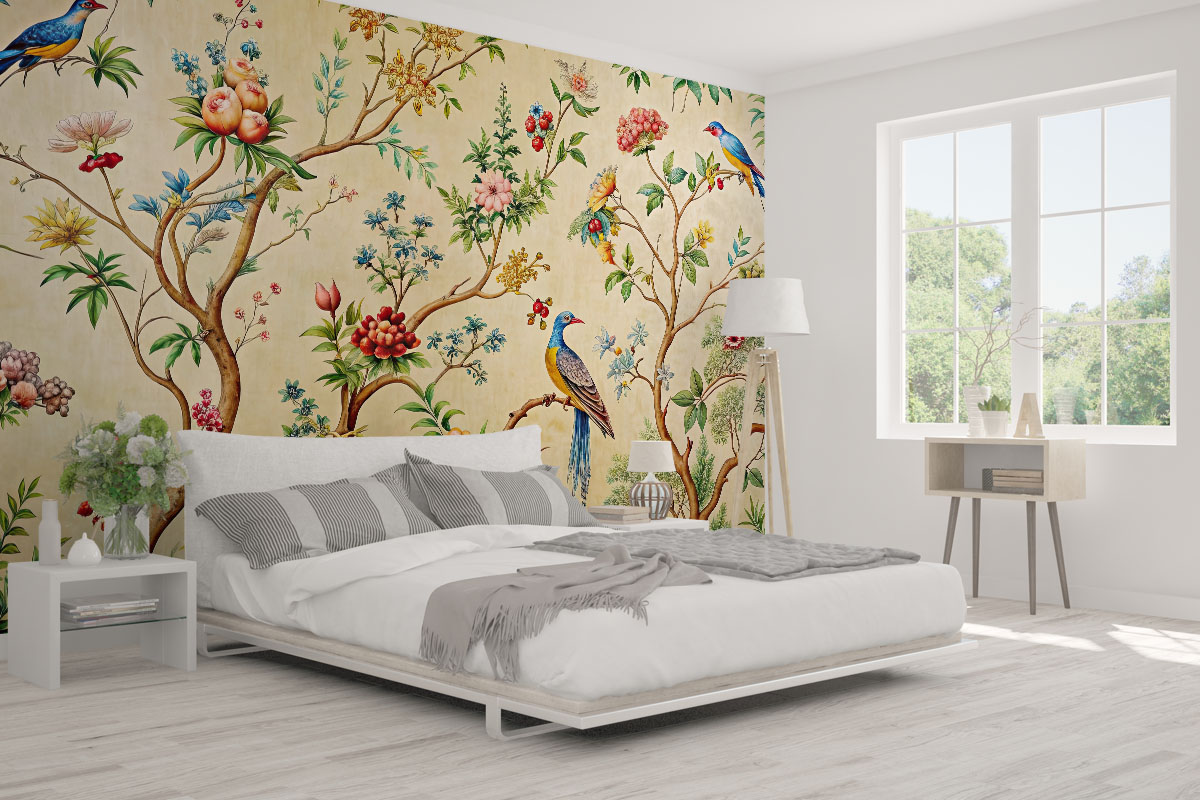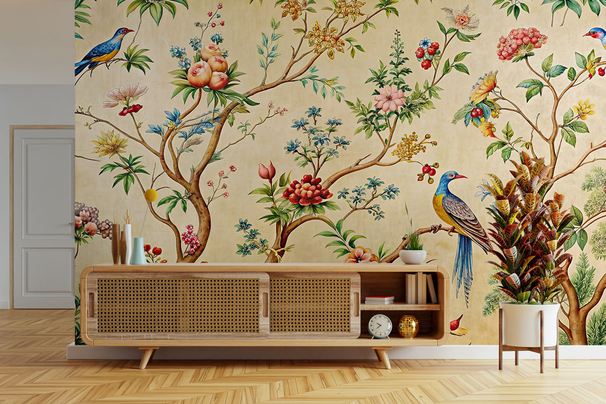 Exotische vogels en bloesems brengen een vleugje luxe en kleur in huis.