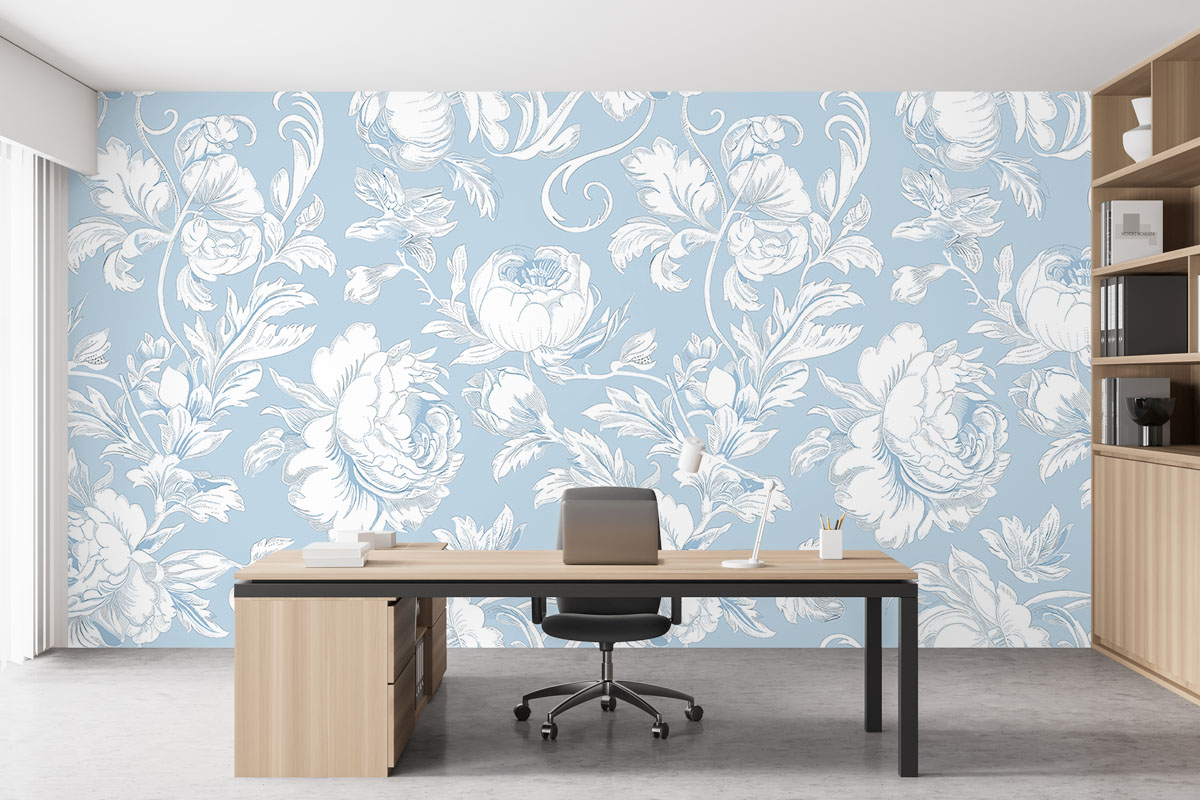 Jouw design Poederblauwe barokbloemen wordt geprint op hoogwaardig vliesbehang van premium kwaliteit. Dit stevige behang (200 g/m²) is duurzaam, krasvast en behoudt jarenlang zijn kleur en structuur — perfect voor elke woonruimte, van woonkamer tot slaapkamer of kantoor. Het fotobehang wordt volledig op maat gemaakt, zodat het ontwerp naadloos aansluit op jouw muur. Dankzij de gladde afwerking en strakke structuur komen kleuren en details prachtig tot leven.