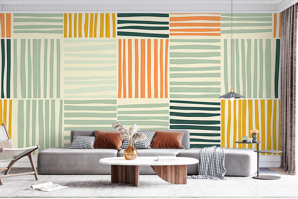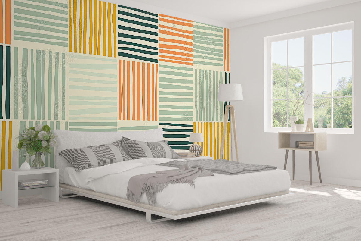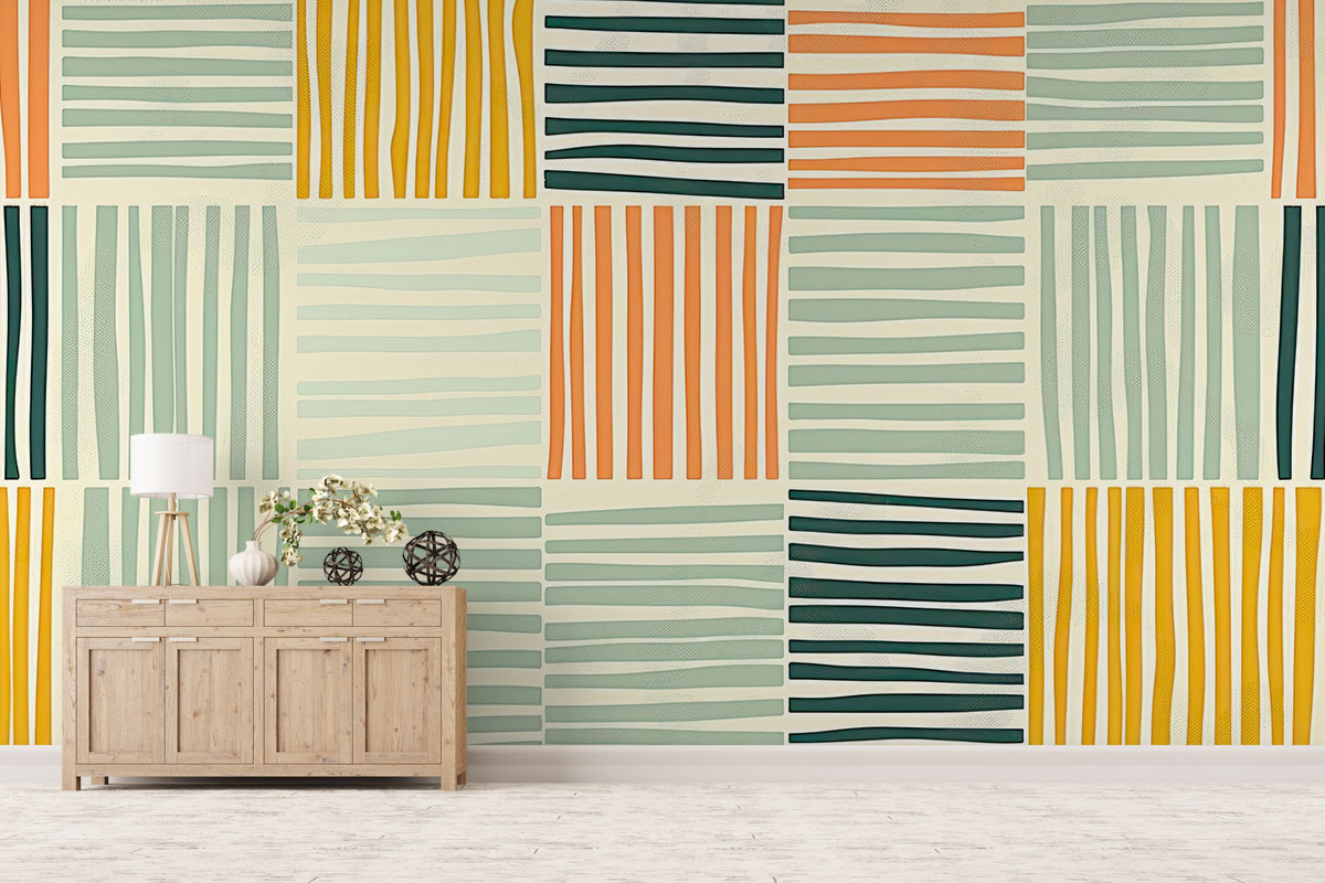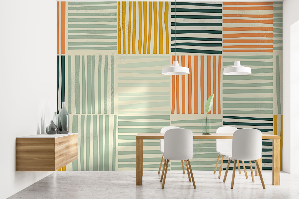 Jouw design Retro ritme wordt geprint op hoogwaardig vliesbehang van premium kwaliteit. Dit stevige behang (200 g/m²) is duurzaam, krasvast en behoudt jarenlang zijn kleur en structuur — perfect voor elke woonruimte, van woonkamer tot slaapkamer of kantoor. Het fotobehang wordt volledig op maat gemaakt, zodat het ontwerp naadloos aansluit op jouw muur. Dankzij de gladde afwerking en strakke structuur komen kleuren en details prachtig tot leven.