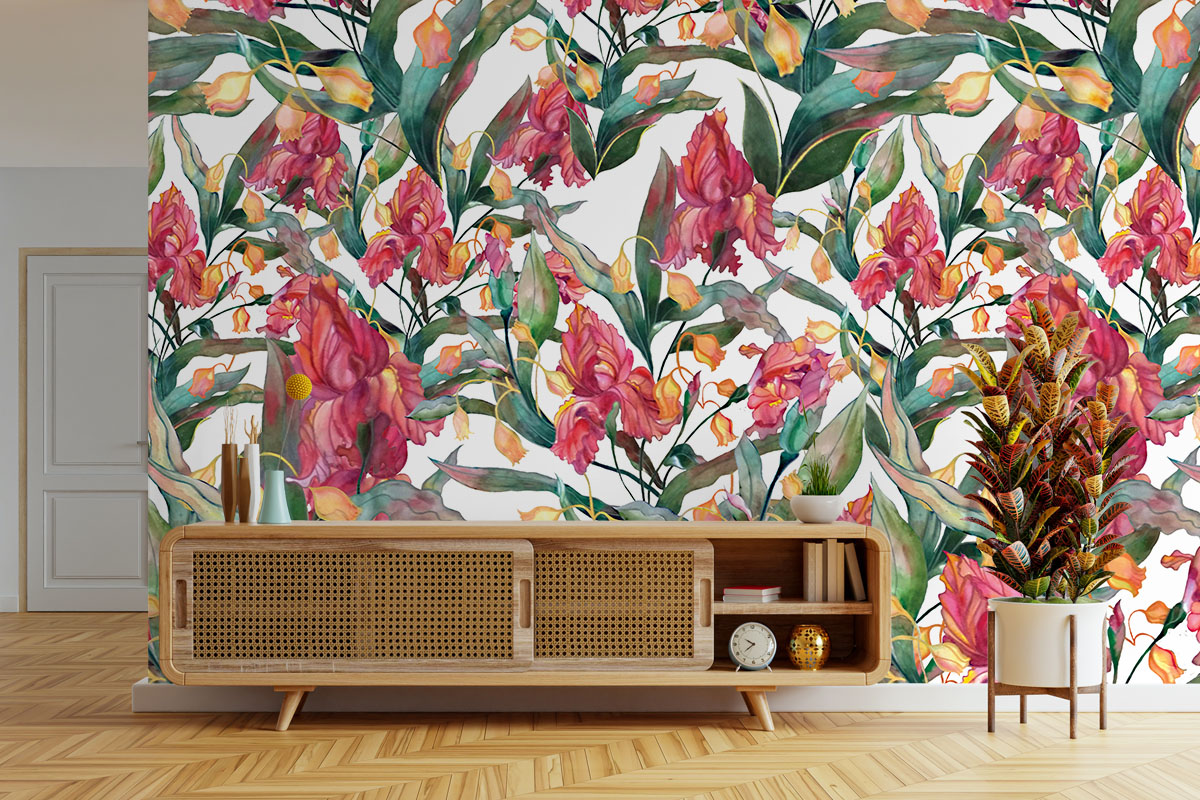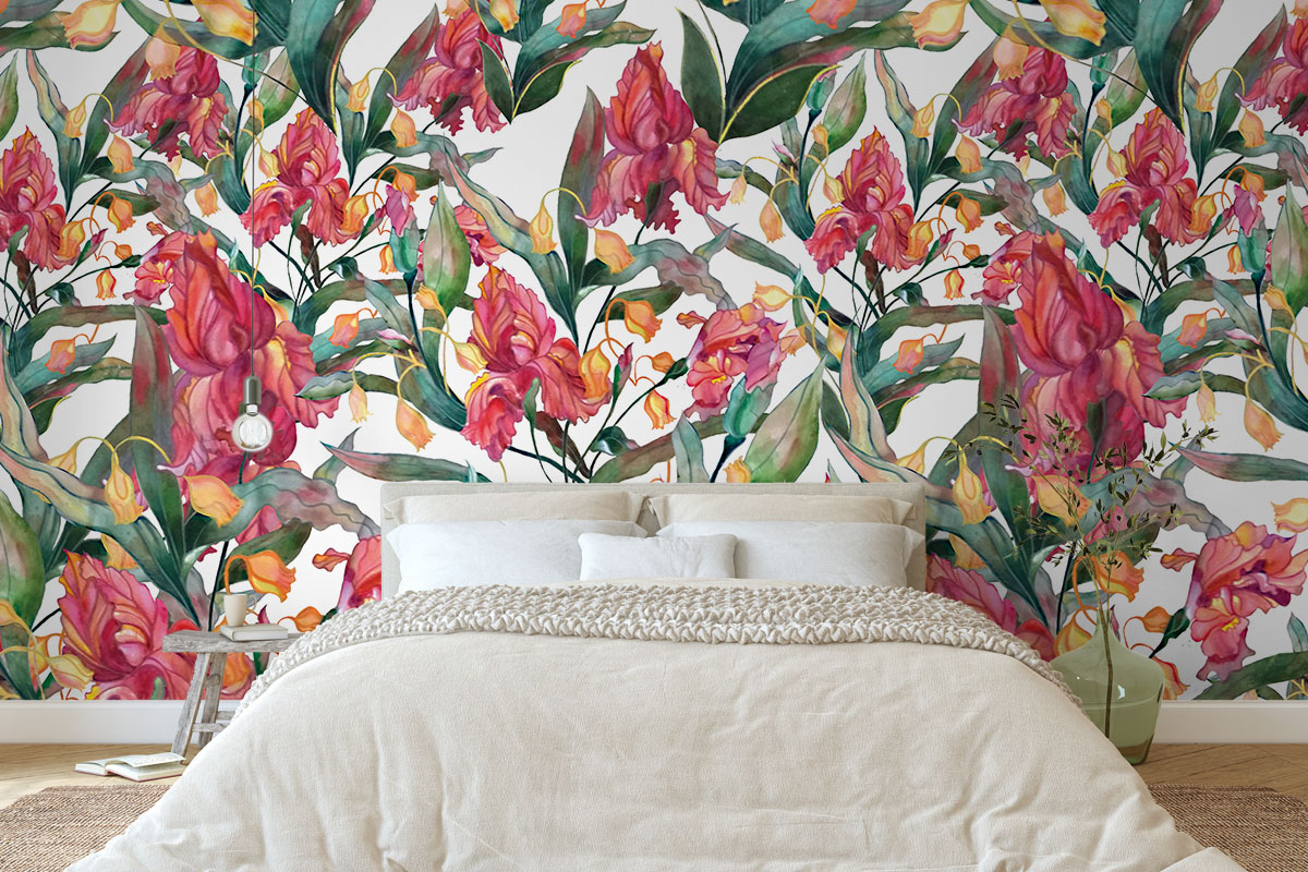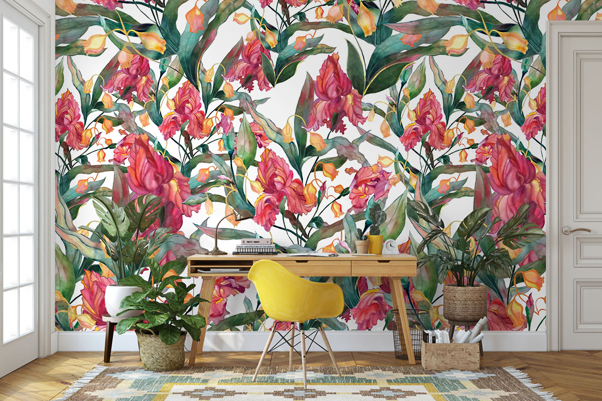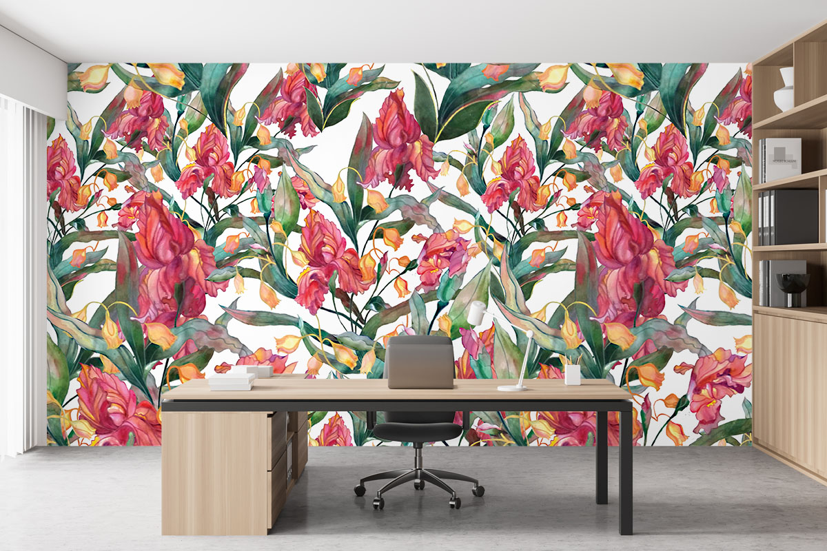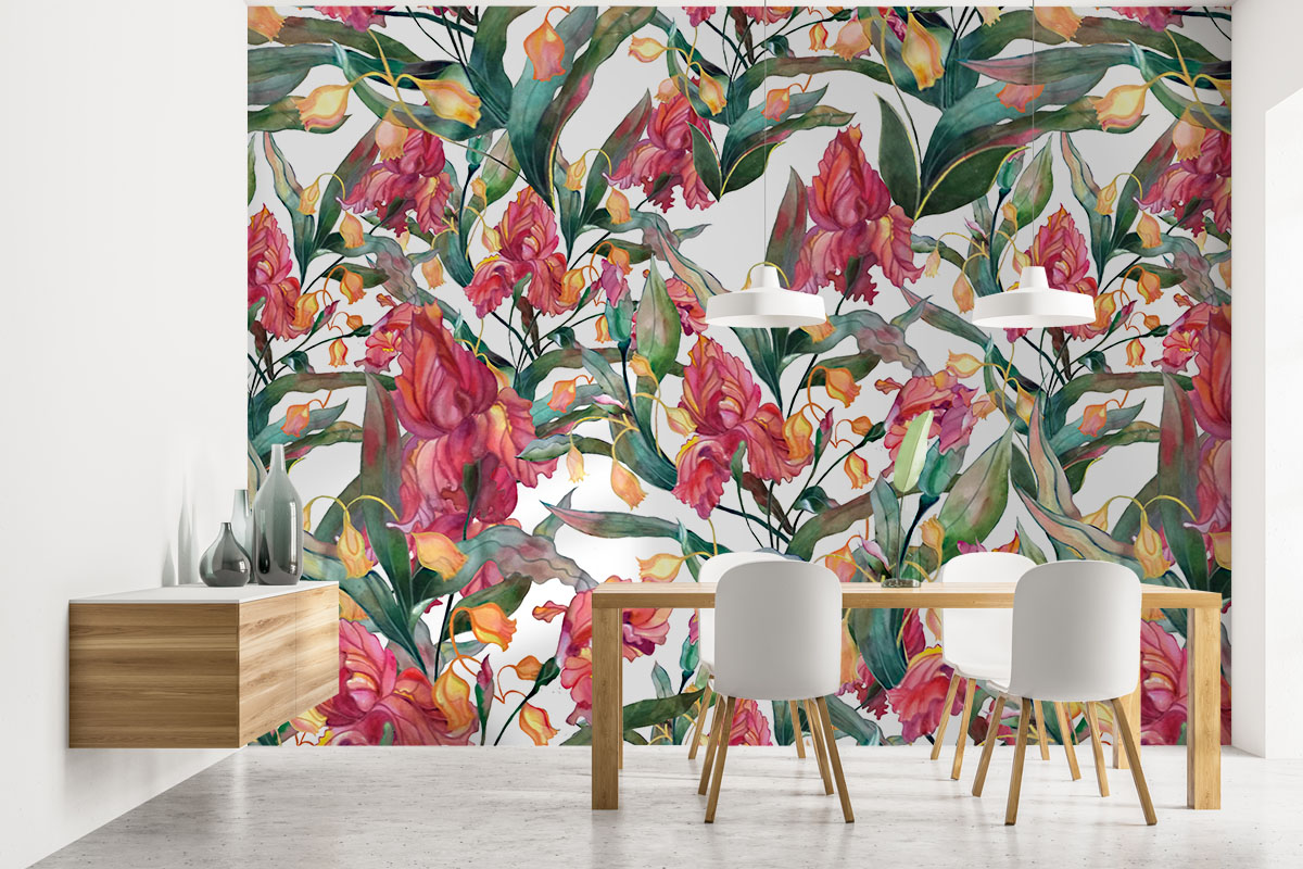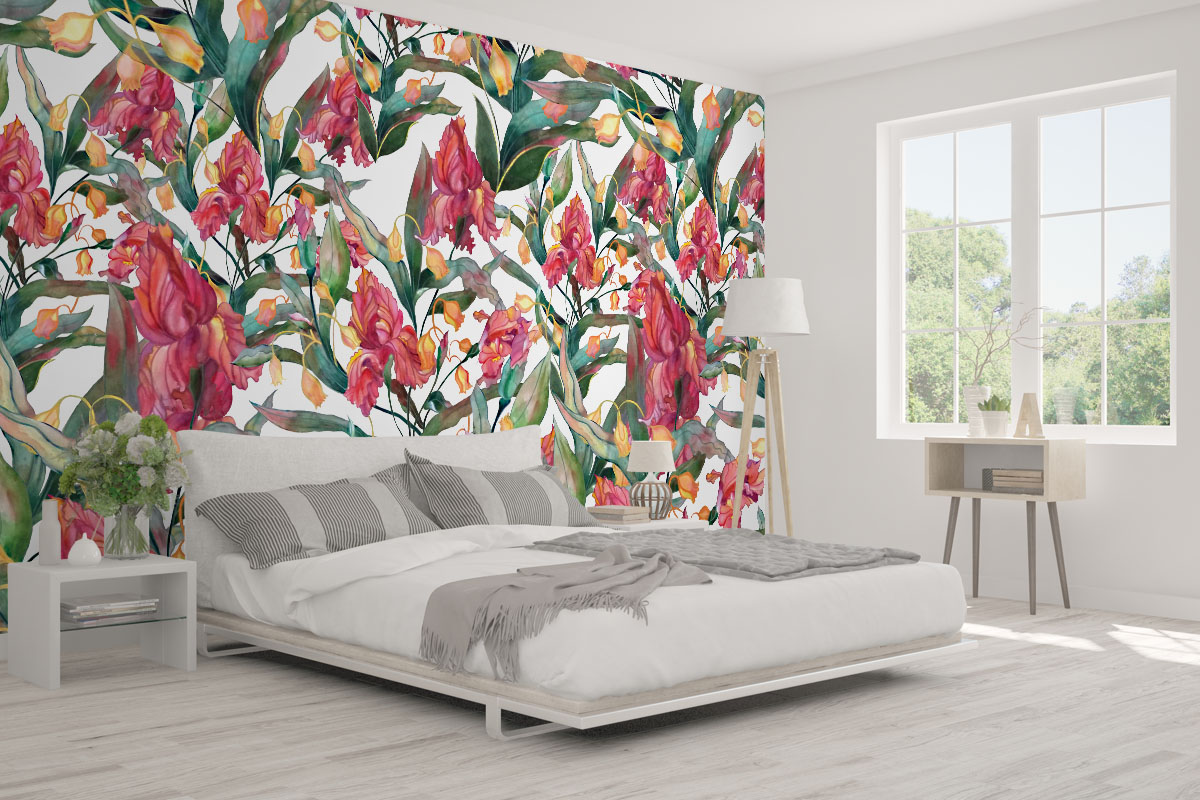 Jouw design Rode paradijsbloemen wordt geprint op hoogwaardig vliesbehang van premium kwaliteit. Dit stevige behang (200 g/m²) is duurzaam, krasvast en behoudt jarenlang zijn kleur en structuur — perfect voor elke woonruimte, van woonkamer tot slaapkamer of kantoor. Het fotobehang wordt volledig op maat gemaakt, zodat het ontwerp naadloos aansluit op jouw muur. Dankzij de gladde afwerking en strakke structuur komen kleuren en details prachtig tot leven.