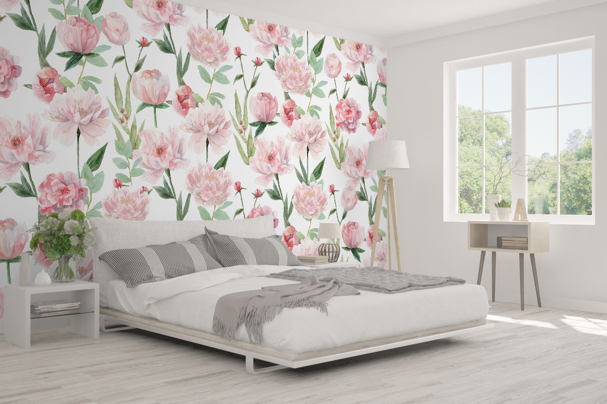 Wil je de muur combineren met verf? We hebben drie Flexa Pure kleuren geselecteerd die perfect matchen met dit fotobehang Roze aquarel pioenrozen. Zo creëer je eenvoudig een harmonieus interieur.