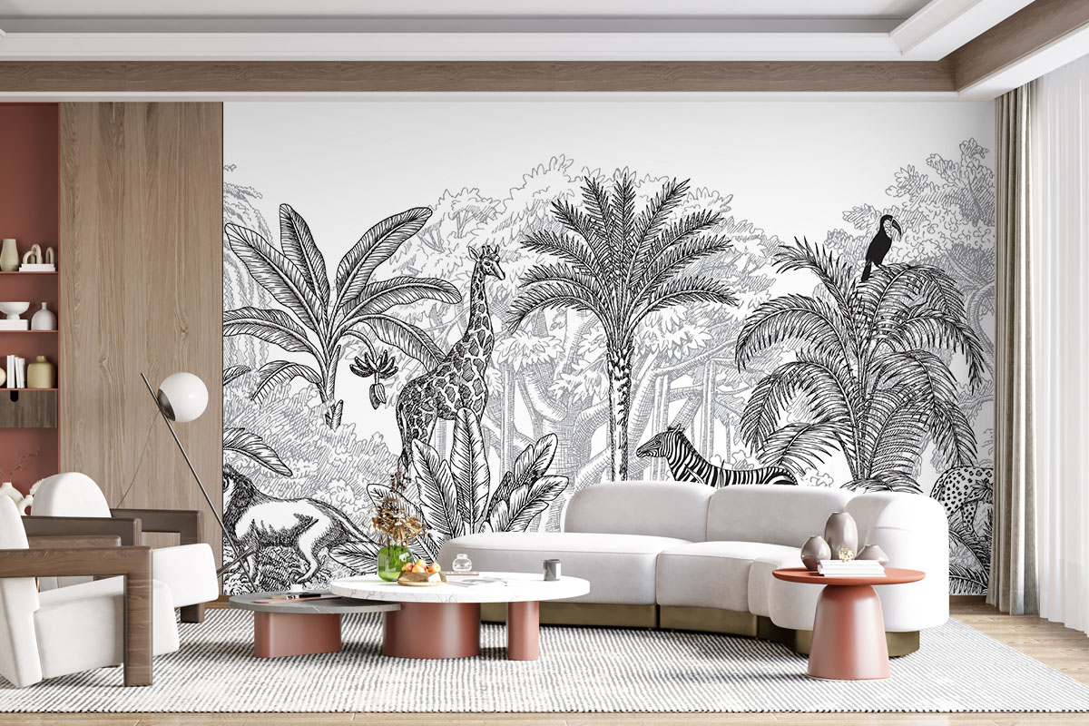 Jouw design Safari panorama wordt geprint op hoogwaardig vliesbehang van premium kwaliteit. Dit stevige behang (200 g/m²) is duurzaam, krasvast en behoudt jarenlang zijn kleur en structuur — perfect voor elke woonruimte, van woonkamer tot slaapkamer of kantoor. Het fotobehang wordt volledig op maat gemaakt, zodat het ontwerp naadloos aansluit op jouw muur. Dankzij de gladde afwerking en strakke structuur komen kleuren en details prachtig tot leven.