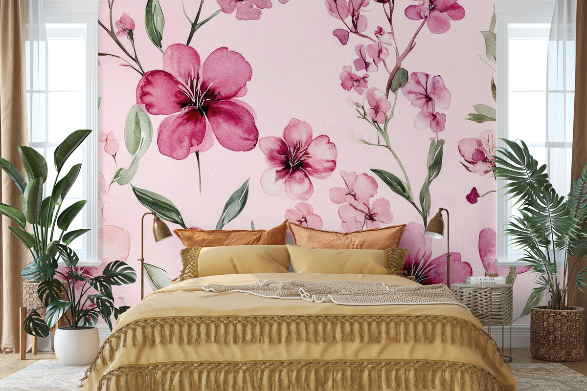 Wil je de muur combineren met verf? We hebben drie Flexa Pure kleuren geselecteerd die perfect matchen met dit fotobehang Sakura bloei. Zo creëer je eenvoudig een harmonieus interieur.