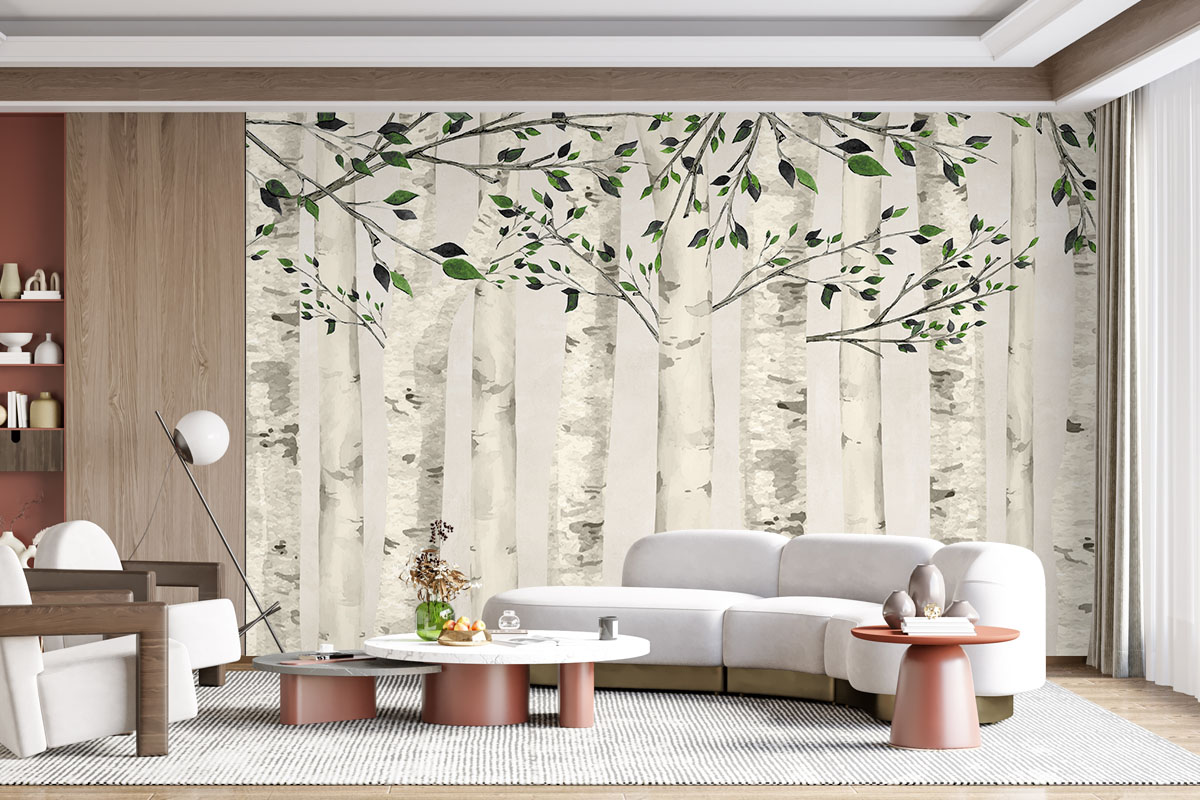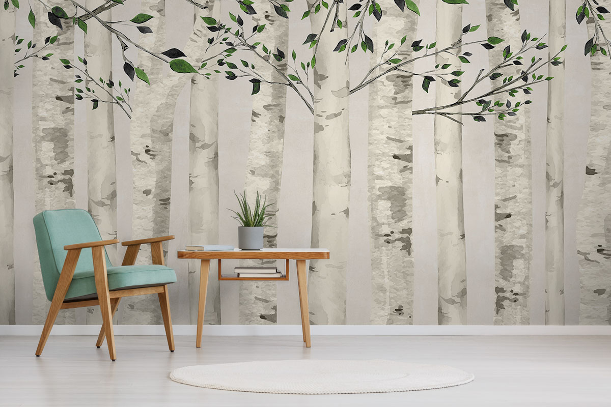 Wil je de muur combineren met verf? We hebben drie Flexa Pure kleuren geselecteerd die perfect matchen met dit fotobehang Scandinavisch berkenbos. Zo creëer je eenvoudig een harmonieus interieur.