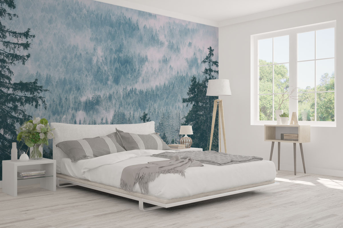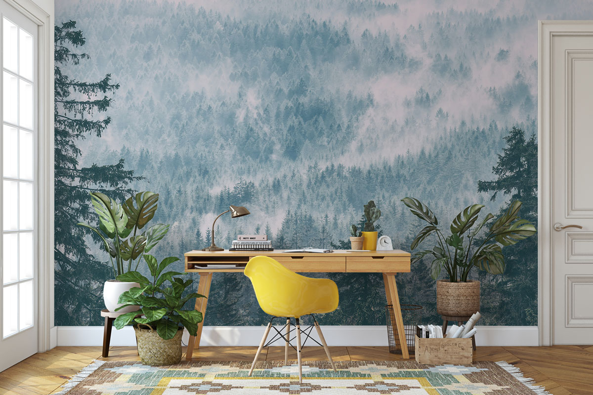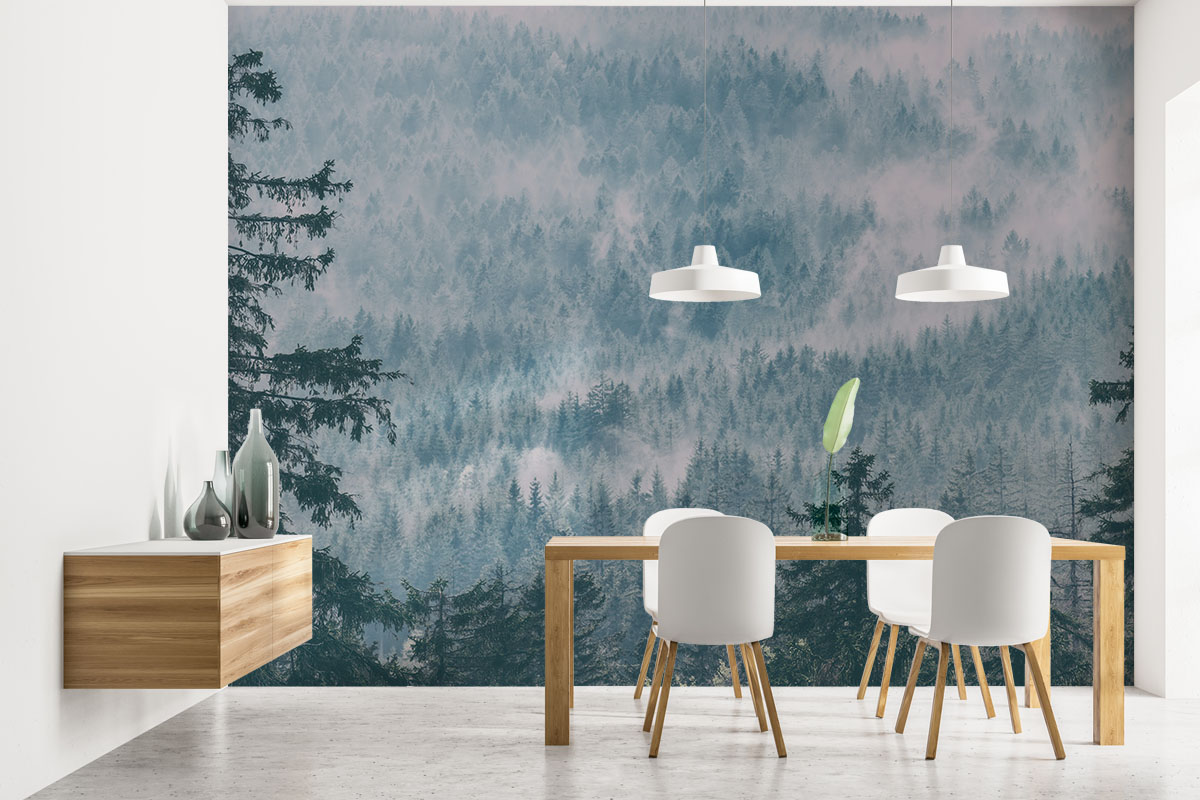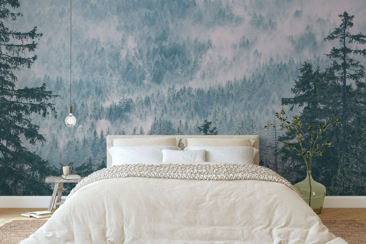 Wil je de muur combineren met verf? We hebben drie Flexa Pure kleuren geselecteerd die perfect matchen met dit fotobehang Scandinavisch naaldbos. Zo creëer je eenvoudig een harmonieus interieur.