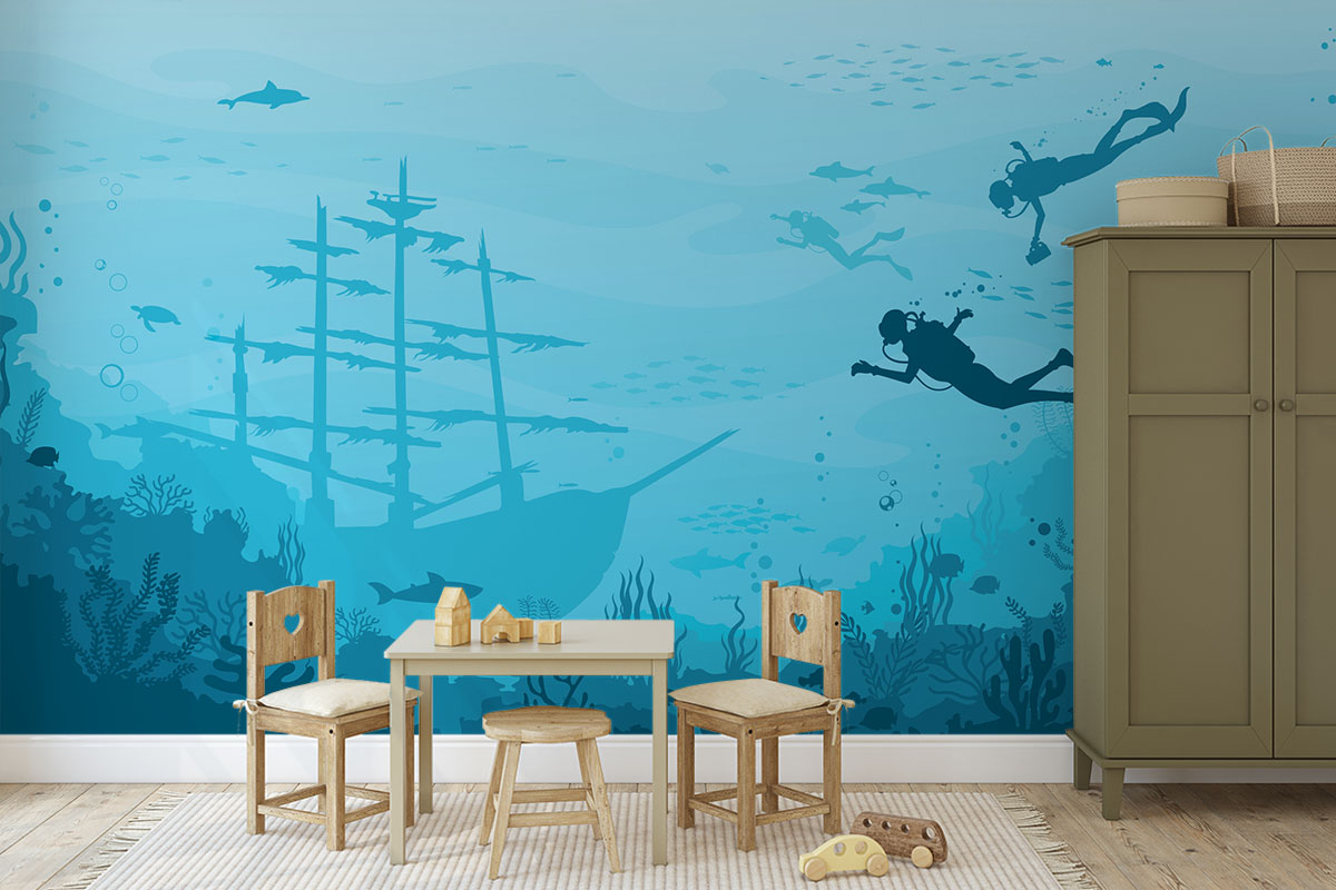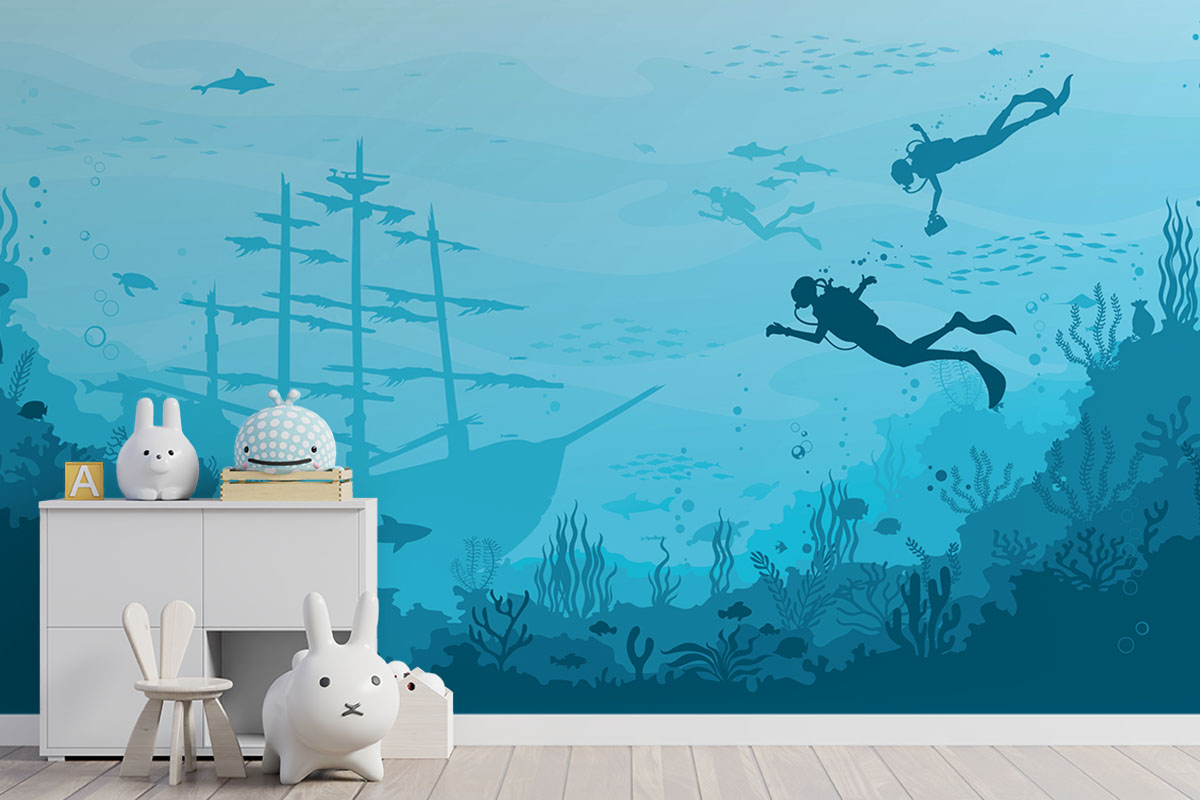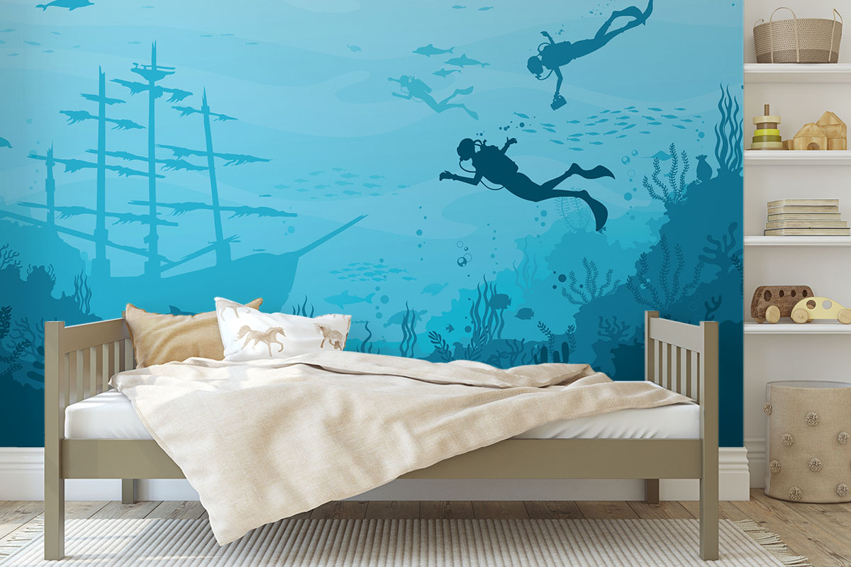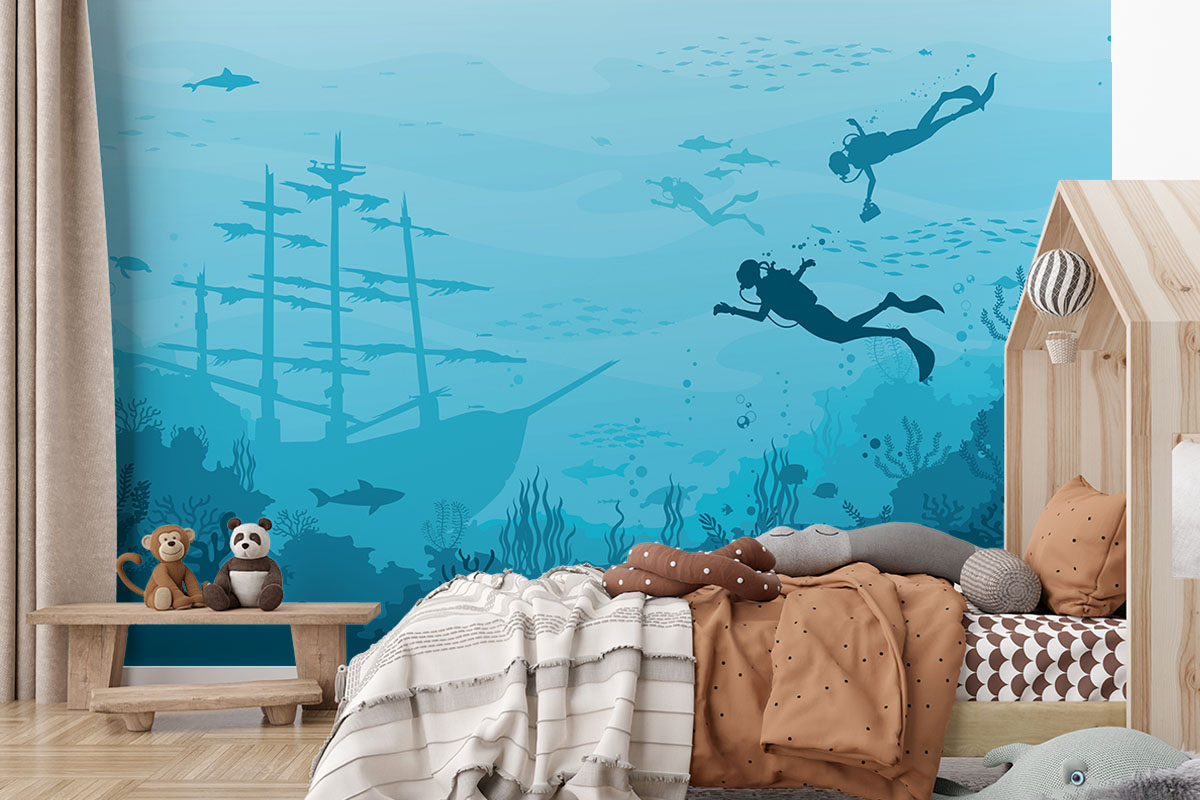 Jouw design Scheepswrak onder water wordt geprint op hoogwaardig duurzaam vliesbehang van premium kwaliteit. Dit stevige behang (200 g/m²) is krasvast, robuust en blijft jarenlang mooi — perfect voor in de kinderkamer, babykamer of speelkamer. Je kunt het behang helemaal op maat laten maken, zodat het ontwerp precies past op jouw muur. Dankzij de gladde afwerking en strakke structuur komt elk detail van het ontwerp perfect tot zijn recht.
