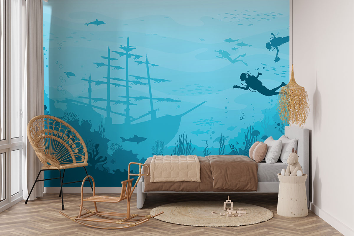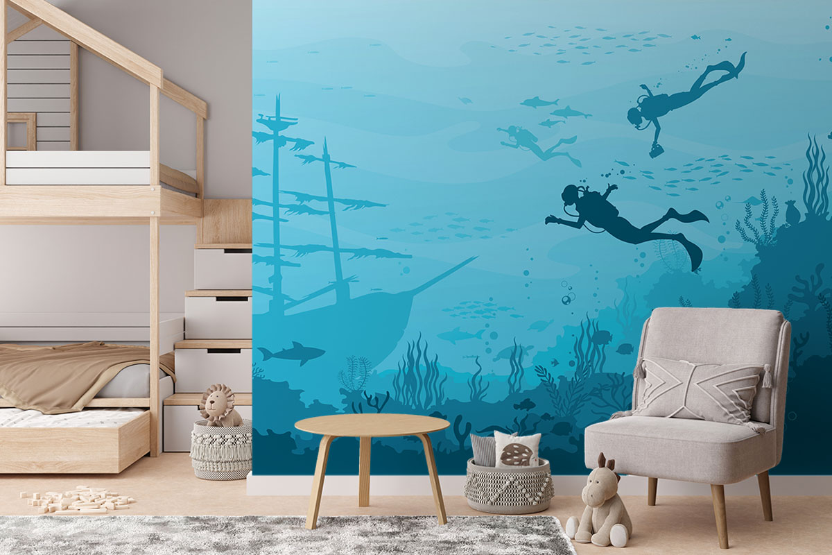 Jouw design Scheepswrak onder water wordt geprint op hoogwaardig duurzaam vliesbehang van premium kwaliteit. Dit stevige behang (200 g/m²) is krasvast, robuust en blijft jarenlang mooi — perfect voor in de kinderkamer, babykamer of speelkamer. Je kunt het behang helemaal op maat laten maken, zodat het ontwerp precies past op jouw muur. Dankzij de gladde afwerking en strakke structuur komt elk detail van het ontwerp perfect tot zijn recht.