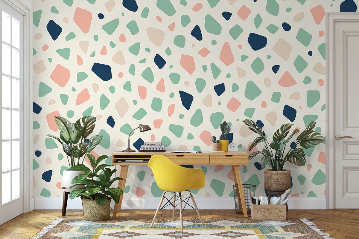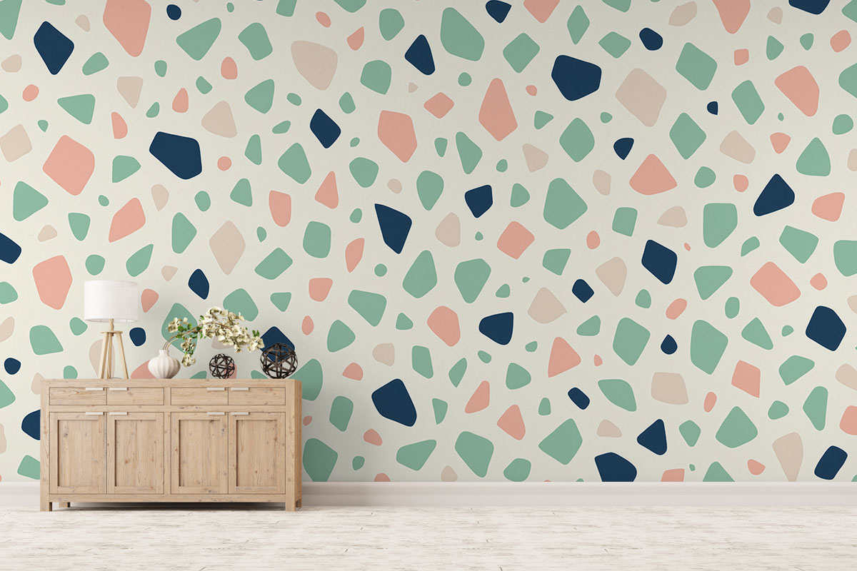 Jouw design Terrazzo patroon wordt geprint op hoogwaardig vliesbehang van premium kwaliteit. Dit stevige behang (200 g/m²) is duurzaam, krasvast en behoudt jarenlang zijn kleur en structuur — perfect voor elke woonruimte, van woonkamer tot slaapkamer of kantoor. Het fotobehang wordt volledig op maat gemaakt, zodat het ontwerp naadloos aansluit op jouw muur. Dankzij de gladde afwerking en strakke structuur komen kleuren en details prachtig tot leven.