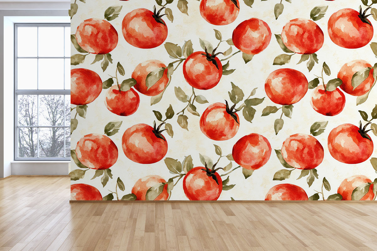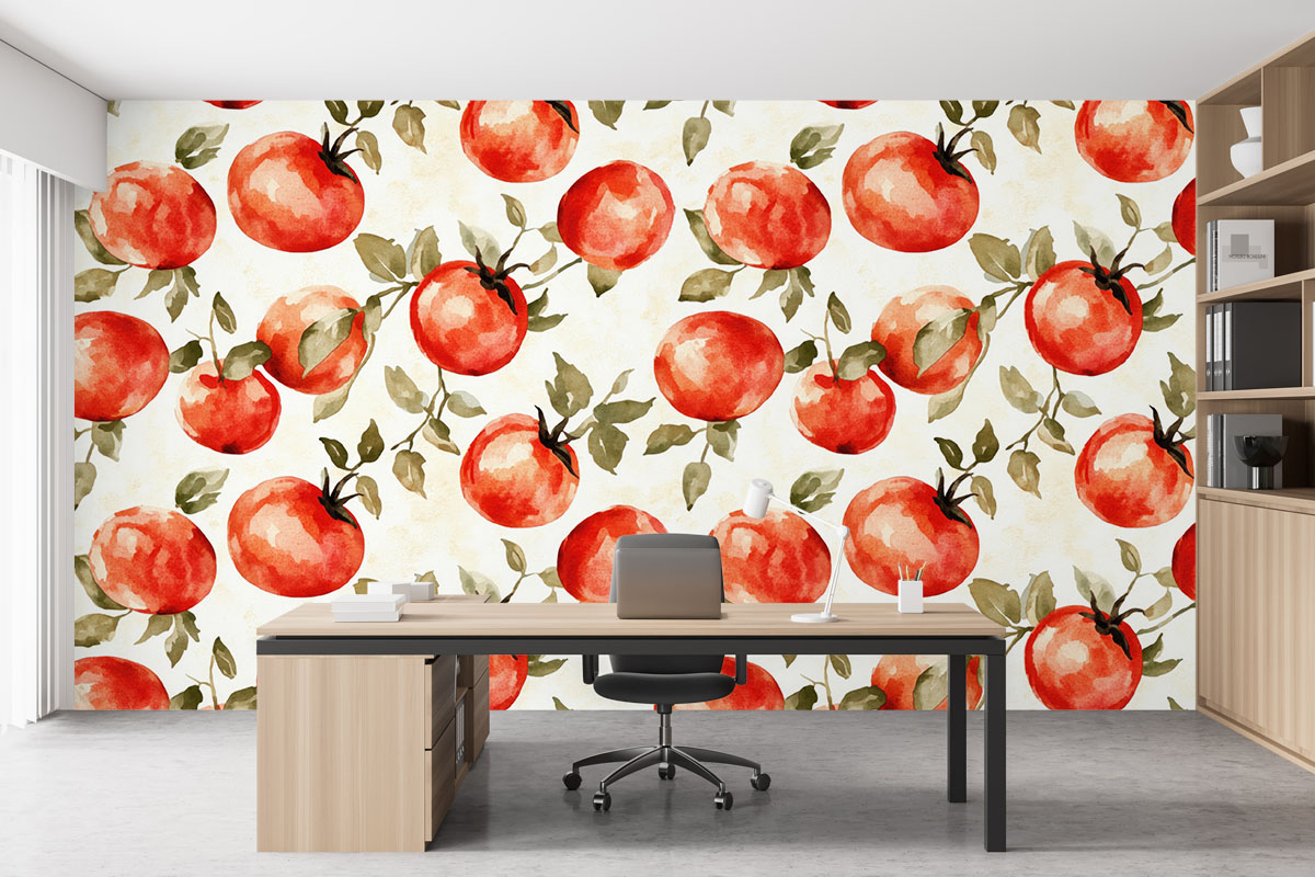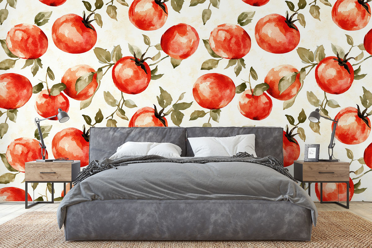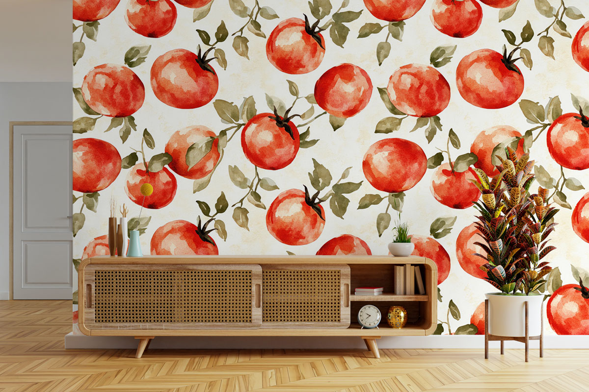 Jouw design Tomatenveld wordt geprint op hoogwaardig vliesbehang van premium kwaliteit. Dit stevige behang (200 g/m²) is duurzaam, krasvast en behoudt jarenlang zijn kleur en structuur — perfect voor elke woonruimte, van woonkamer tot slaapkamer of kantoor. Het fotobehang wordt volledig op maat gemaakt, zodat het ontwerp naadloos aansluit op jouw muur. Dankzij de gladde afwerking en strakke structuur komen kleuren en details prachtig tot leven.