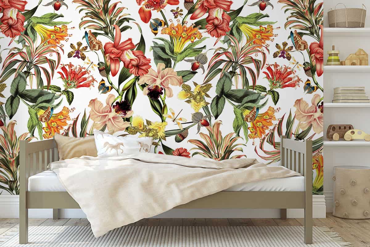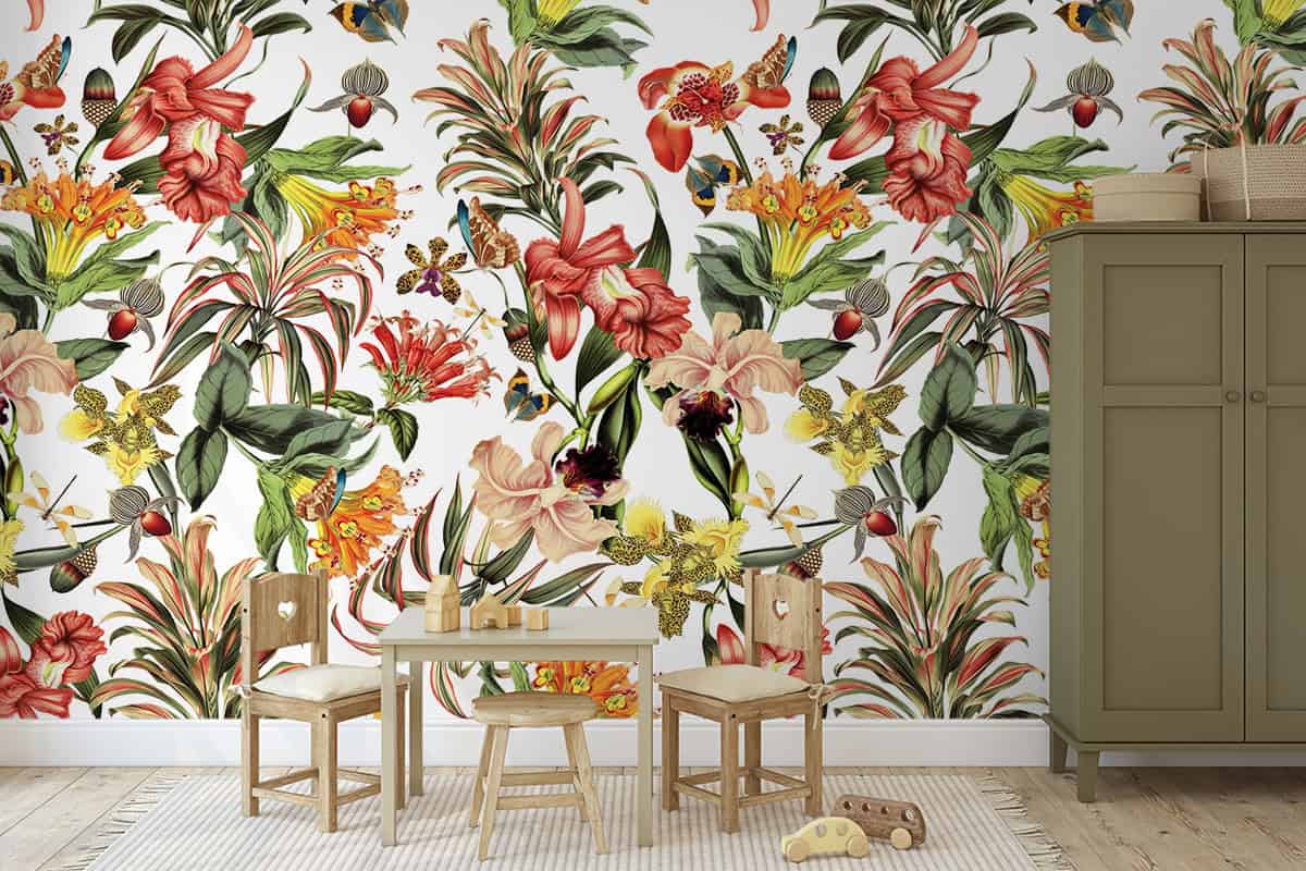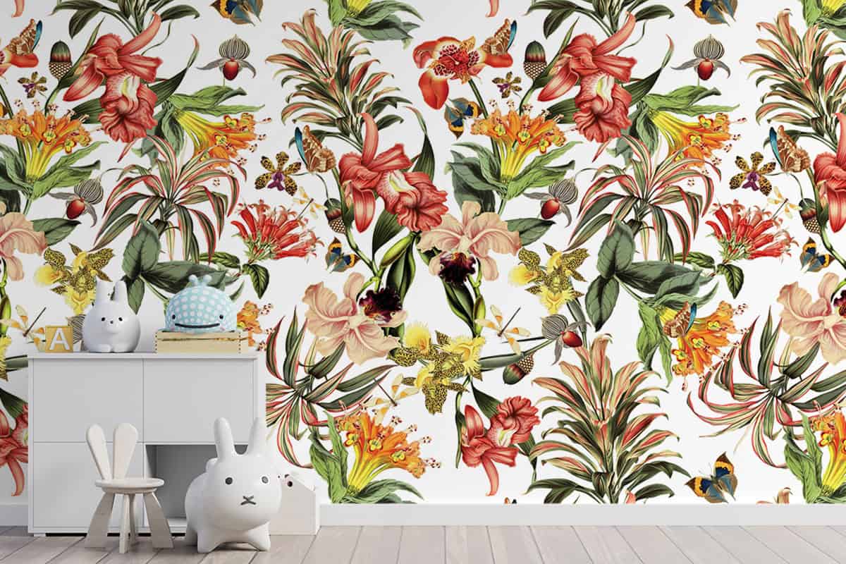 Wil je naast het behang ook een muur in de baby- of kinderkamer verven? Wij hebben alvast 3 Flexa Pure kleuren geselecteerd die perfect passen bij dit fotobehang Tropische bloemenpracht.
