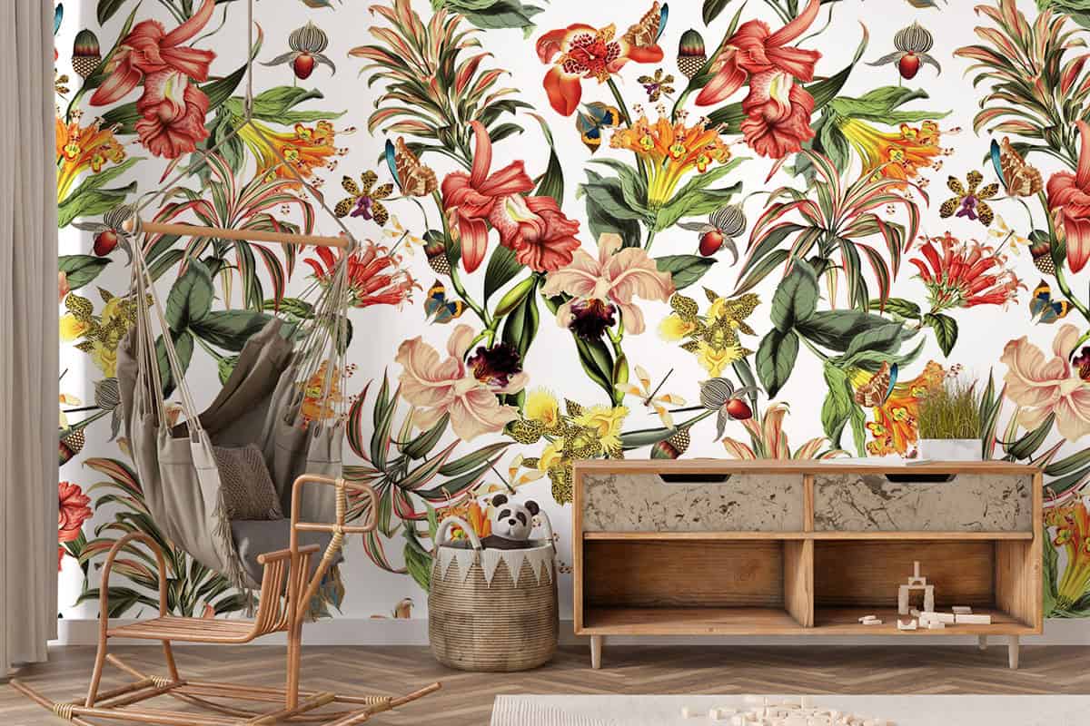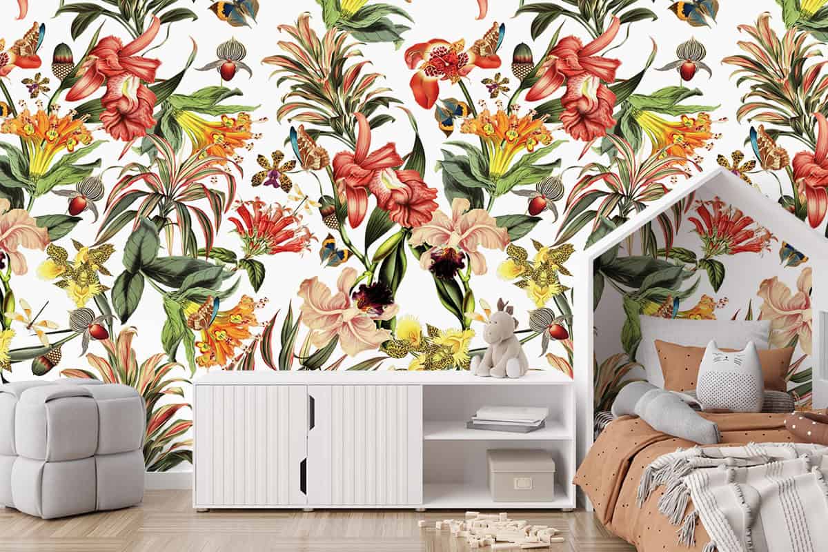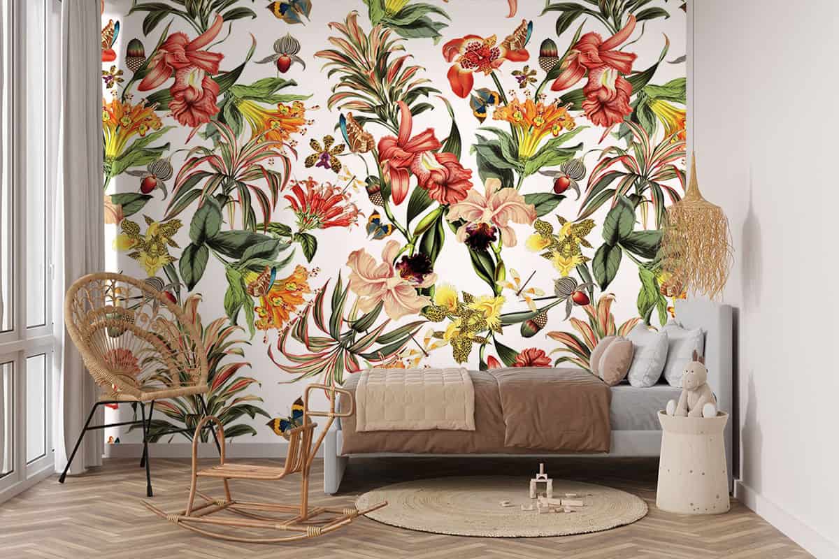 Wil je naast het behang ook een muur in de baby- of kinderkamer verven? Wij hebben alvast 3 Flexa Pure kleuren geselecteerd die perfect passen bij dit fotobehang Tropische bloemenpracht.