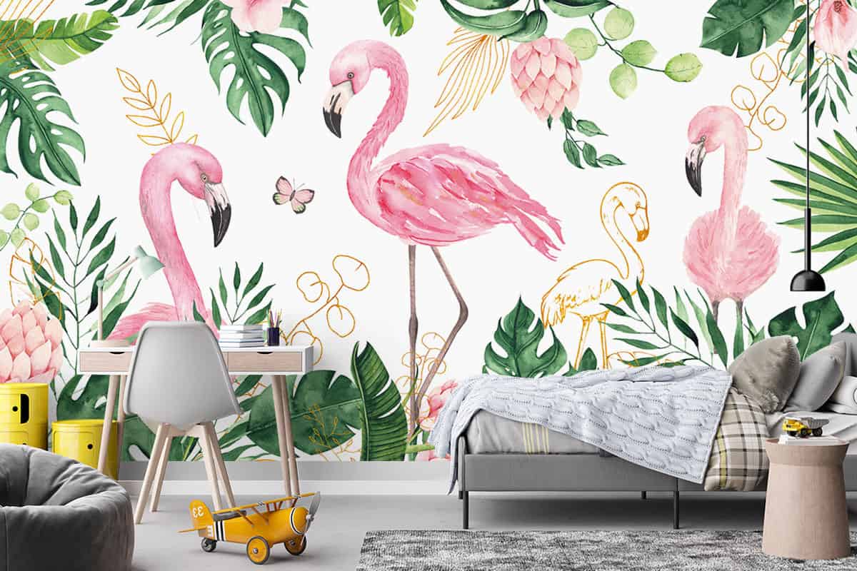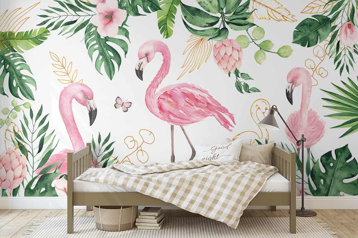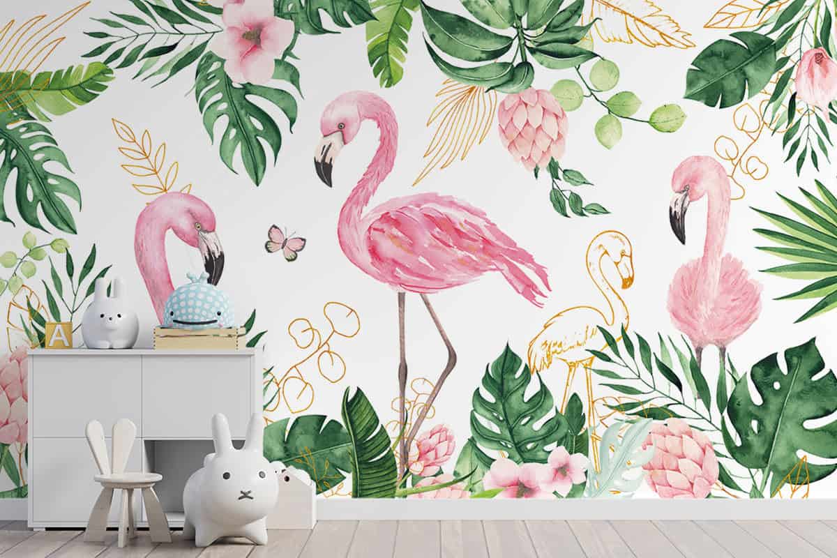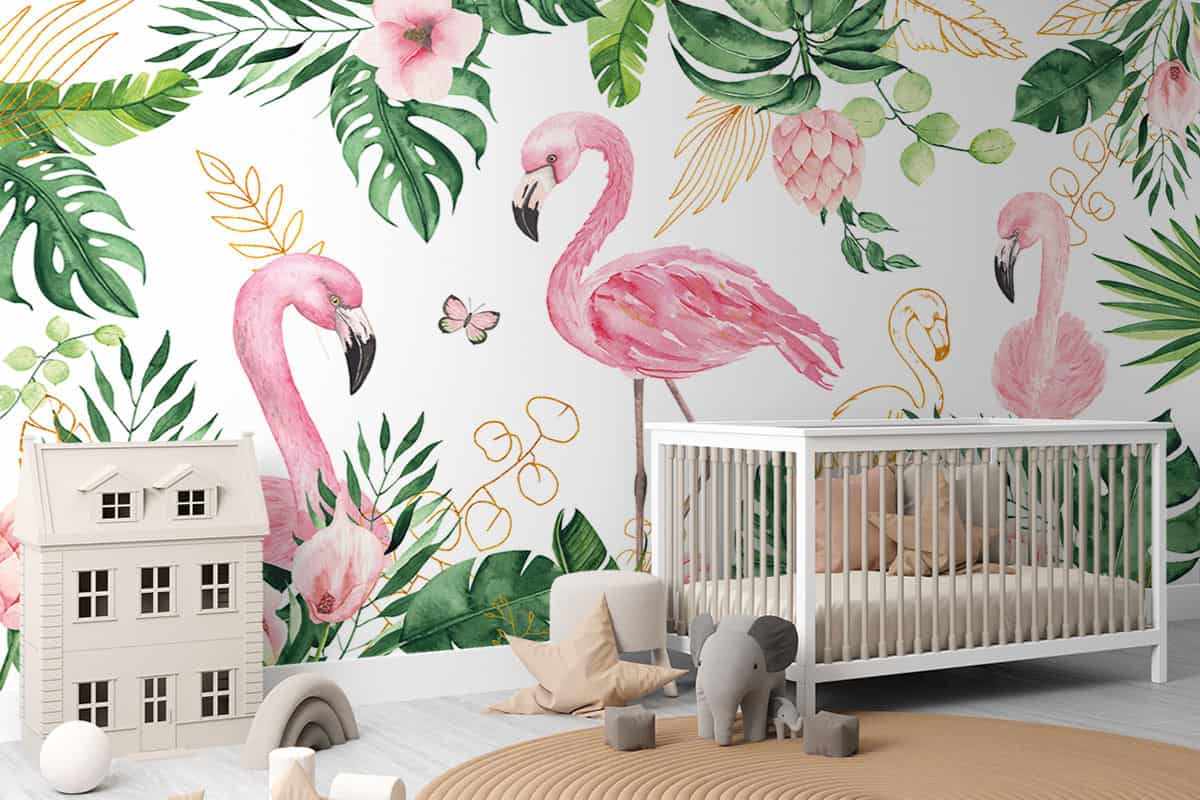 Wil je naast het behang ook een muur in de baby- of kinderkamer verven? Wij hebben alvast 3 Flexa Pure kleuren geselecteerd die perfect passen bij dit fotobehang Tropische flamingo's.