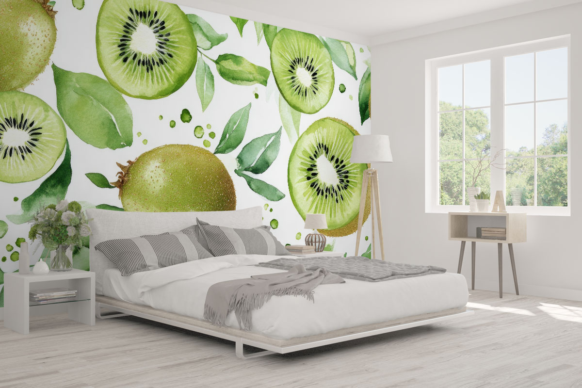 Jouw design Tropische kiwis wordt geprint op hoogwaardig vliesbehang van premium kwaliteit. Dit stevige behang (200 g/m²) is duurzaam, krasvast en behoudt jarenlang zijn kleur en structuur — perfect voor elke woonruimte, van woonkamer tot slaapkamer of kantoor. Het fotobehang wordt volledig op maat gemaakt, zodat het ontwerp naadloos aansluit op jouw muur. Dankzij de gladde afwerking en strakke structuur komen kleuren en details prachtig tot leven.