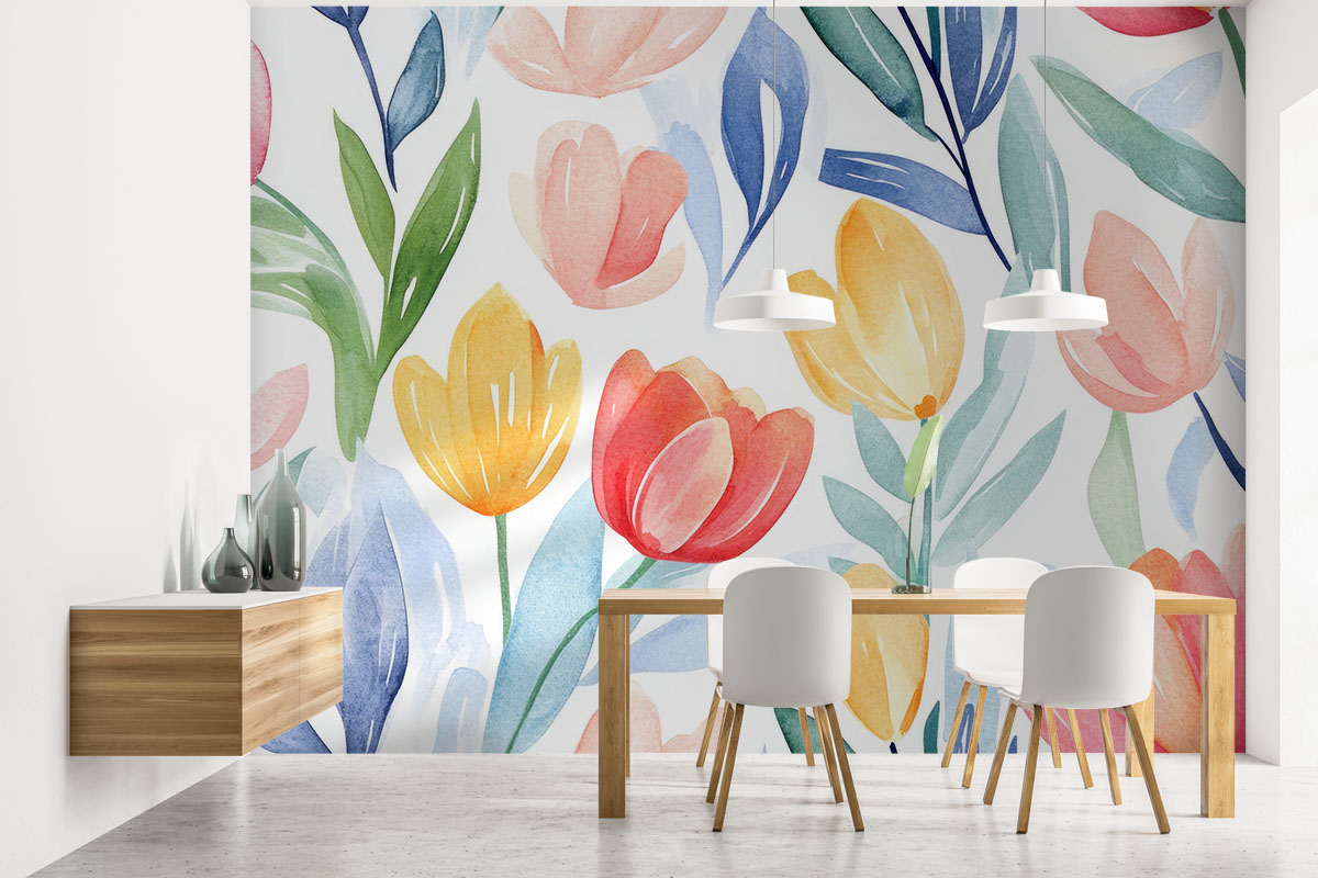 Wil je de muur combineren met verf? We hebben drie Flexa Pure kleuren geselecteerd die perfect matchen met dit fotobehang Tulpendroom. Zo creëer je eenvoudig een harmonieus interieur.