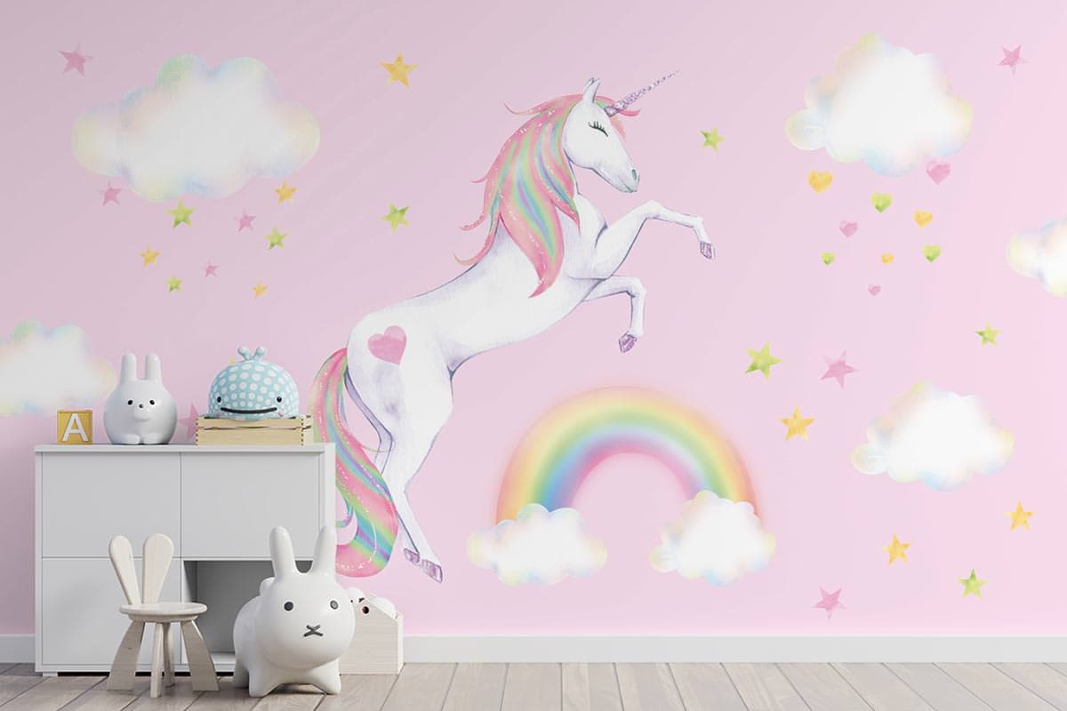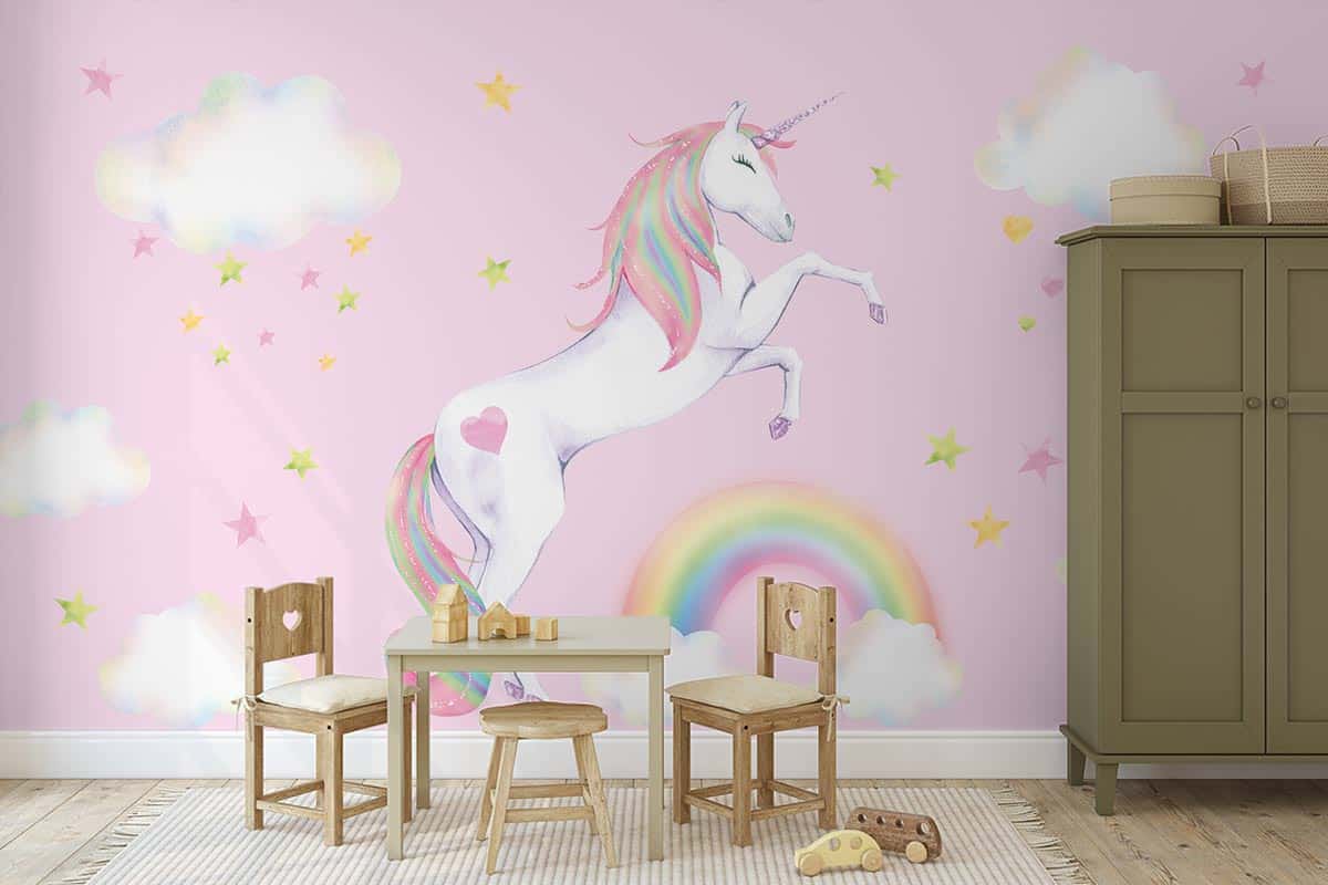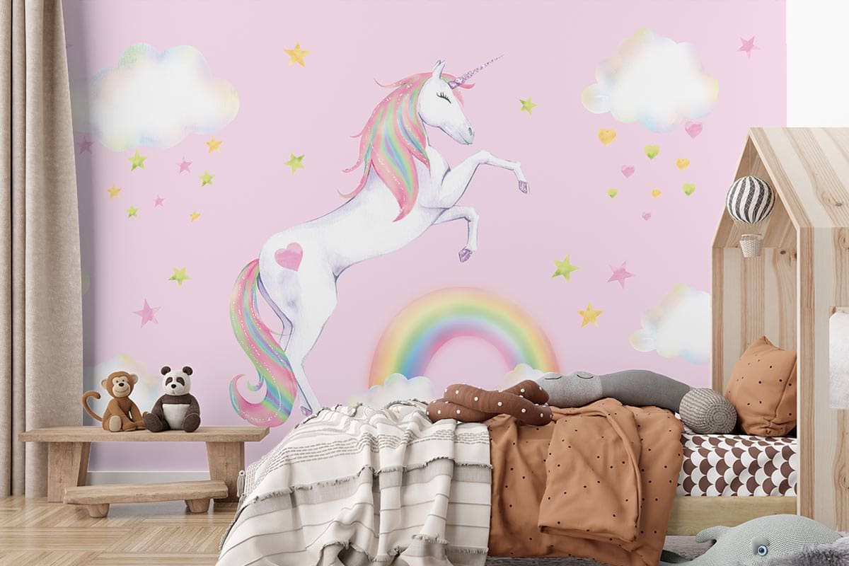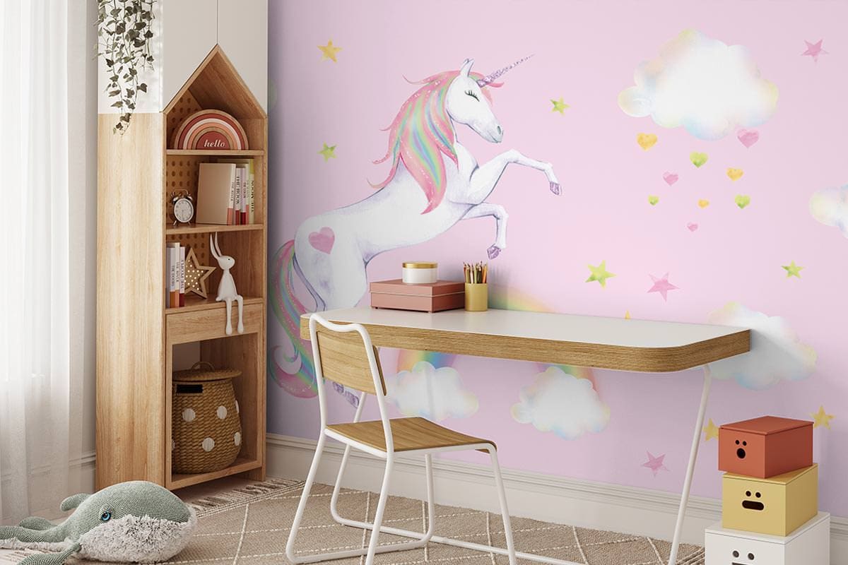 Jouw design Unicorn in de wolken wordt geprint op hoogwaardig duurzaam vliesbehang van premium kwaliteit. Dit stevige behang (200 g/m²) is krasvast, robuust en blijft jarenlang mooi — perfect voor in de kinderkamer, babykamer of speelkamer. Je kunt het behang helemaal op maat laten maken, zodat het ontwerp precies past op jouw muur. Dankzij de gladde afwerking en strakke structuur komt elk detail van het ontwerp perfect tot zijn recht.