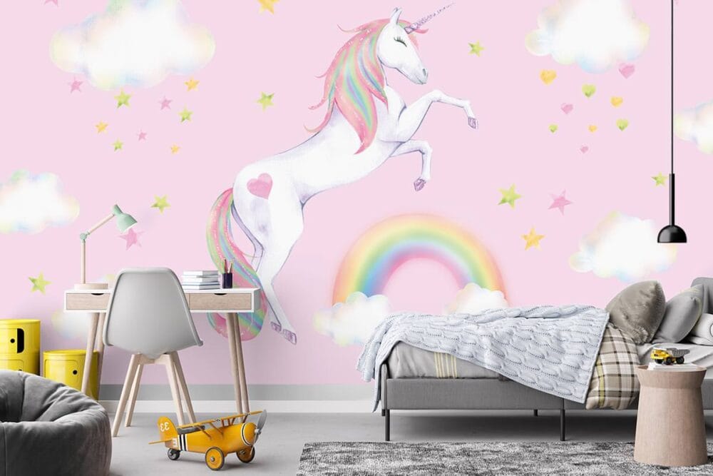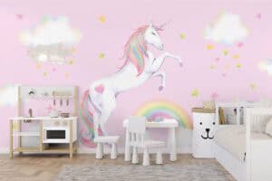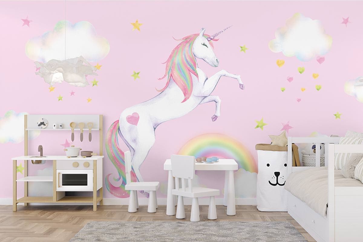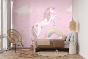 Jouw design Unicorn in de wolken wordt geprint op hoogwaardig duurzaam vliesbehang van premium kwaliteit. Dit stevige behang (200 g/m²) is krasvast, robuust en blijft jarenlang mooi — perfect voor in de kinderkamer, babykamer of speelkamer. Je kunt het behang helemaal op maat laten maken, zodat het ontwerp precies past op jouw muur. Dankzij de gladde afwerking en strakke structuur komt elk detail van het ontwerp perfect tot zijn recht.