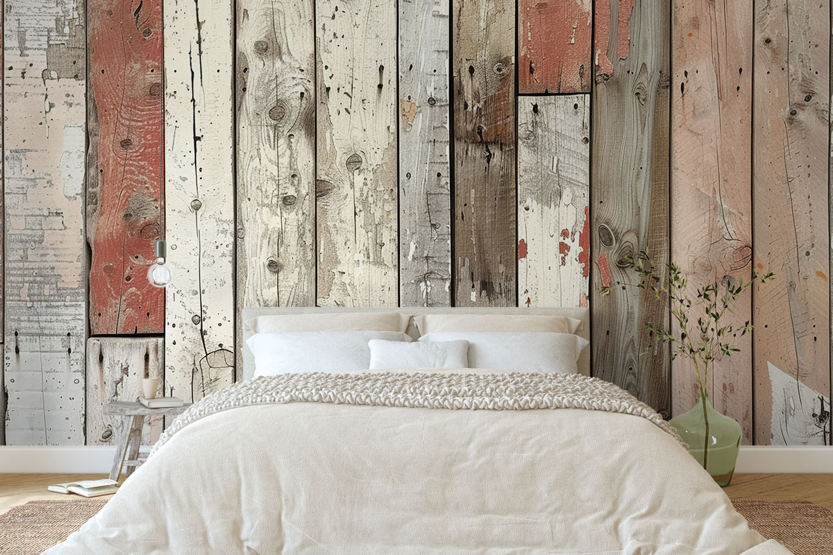 Wil je de muur combineren met verf? We hebben drie Flexa Pure kleuren geselecteerd die perfect matchen met dit fotobehang Verweerd houtgevoel. Zo creëer je eenvoudig een harmonieus interieur.