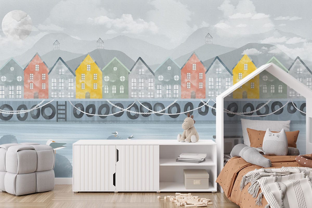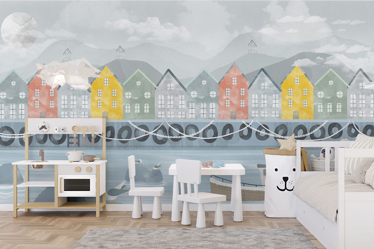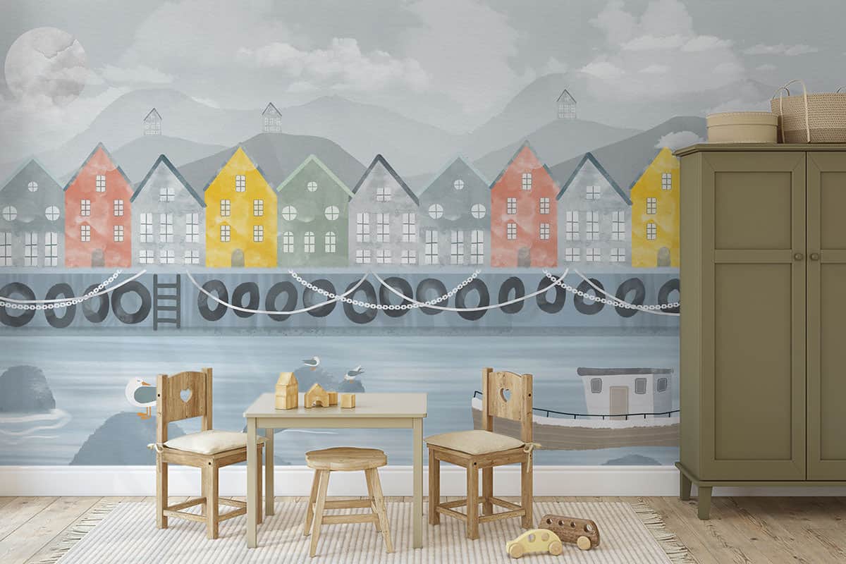 Wil je naast het behang ook een muur in de baby- of kinderkamer verven? Wij hebben alvast 3 Flexa Pure kleuren geselecteerd die perfect passen bij dit fotobehang Vissersboot bij de kade.