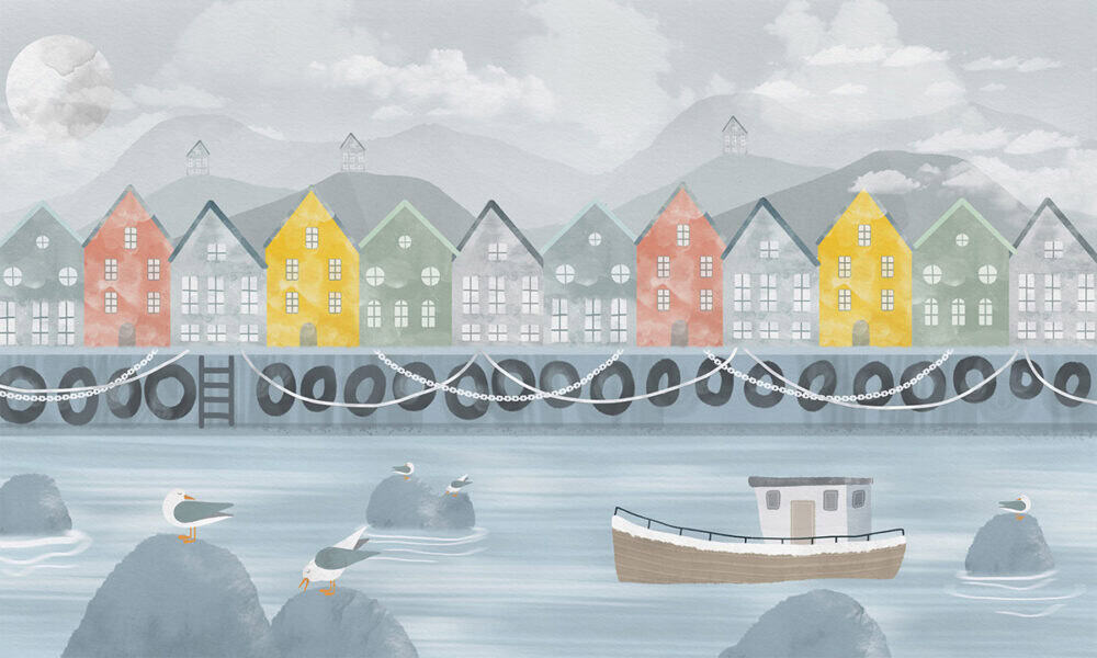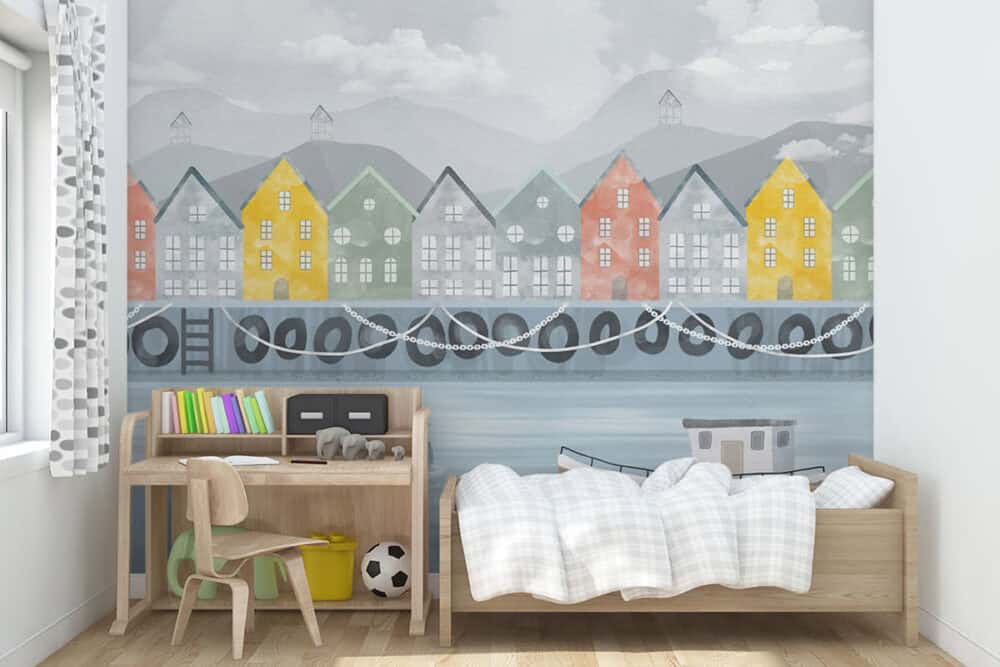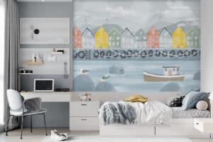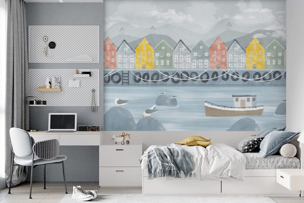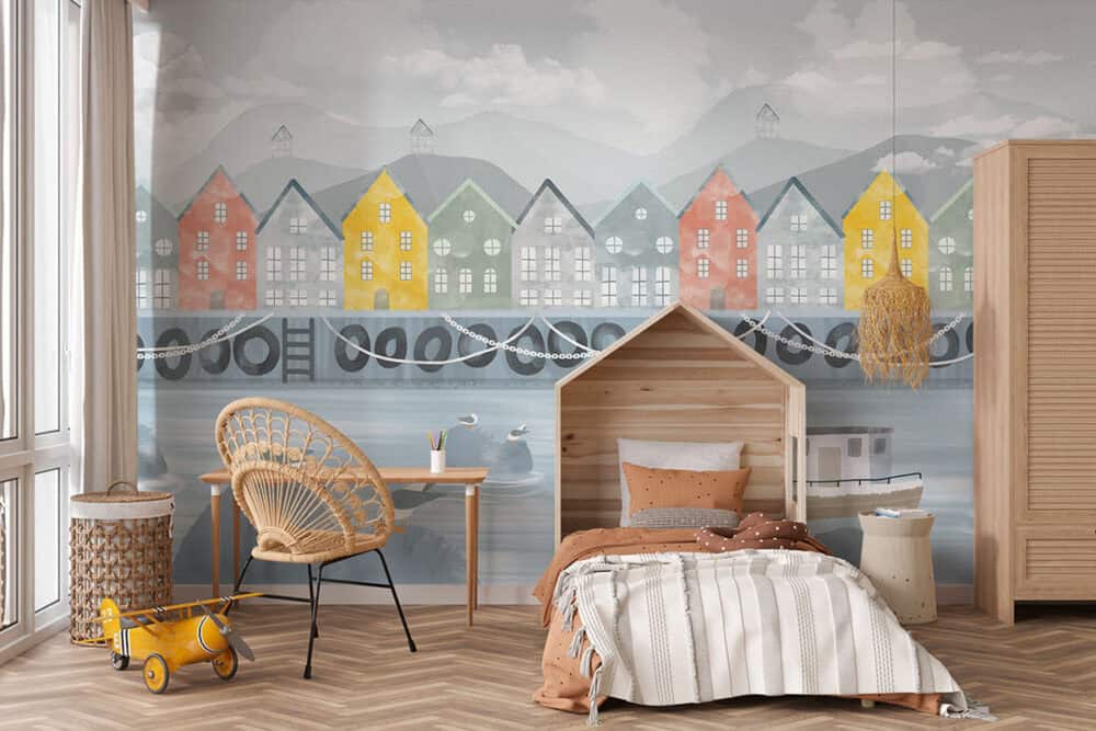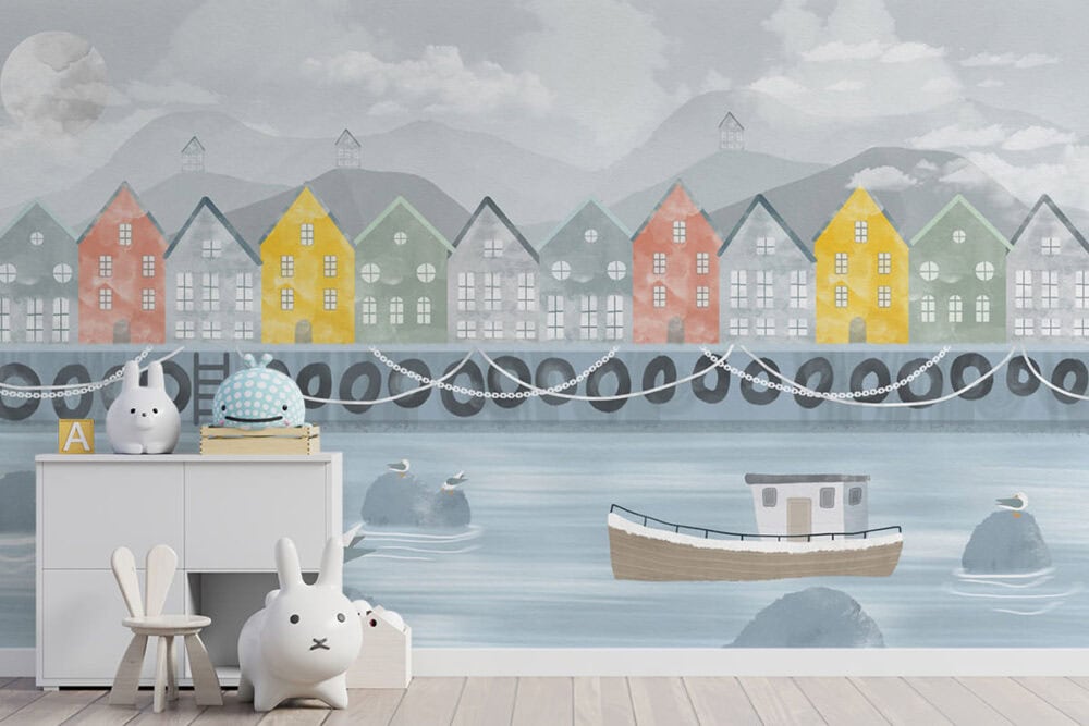 Wil je naast het behang ook een muur in de baby- of kinderkamer verven? Wij hebben alvast 3 Flexa Pure kleuren geselecteerd die perfect passen bij dit fotobehang Vissersboot bij de kade.