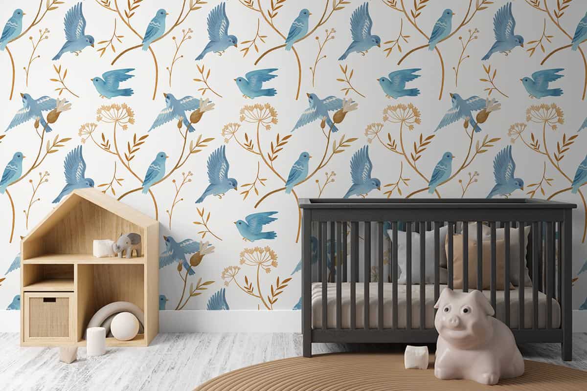Wil je naast het behang ook een muur in de baby- of kinderkamer verven? Wij hebben alvast 3 Flexa Pure kleuren geselecteerd die perfect passen bij dit fotobehang Vogel patroon.