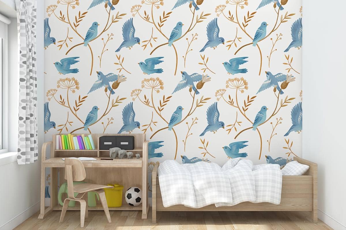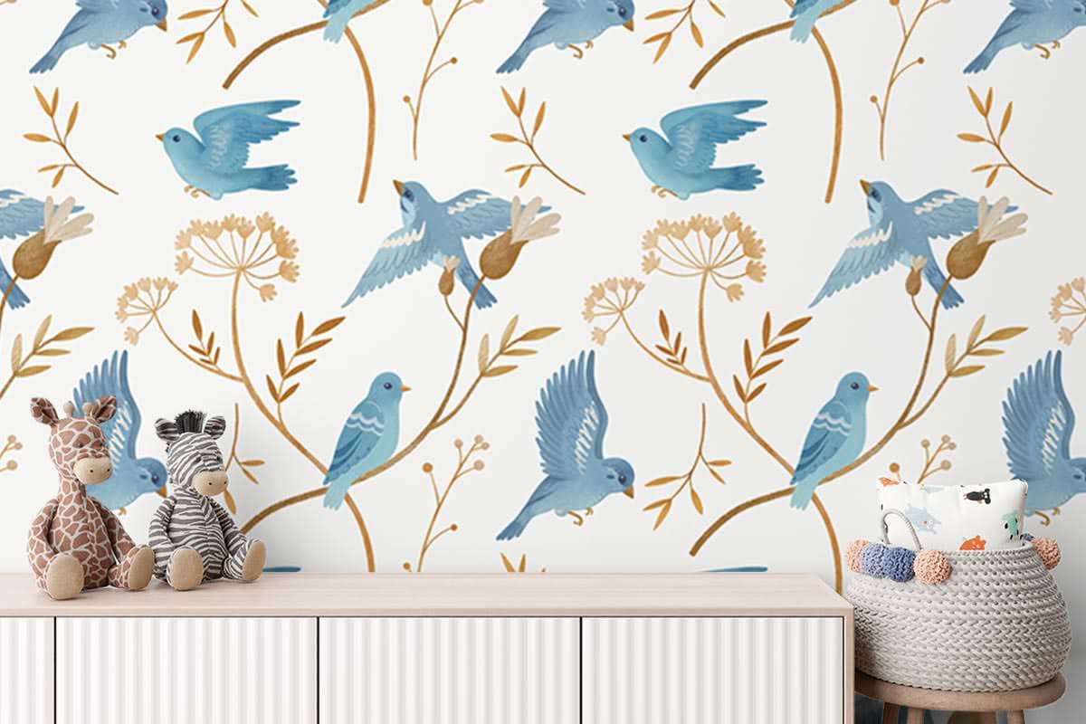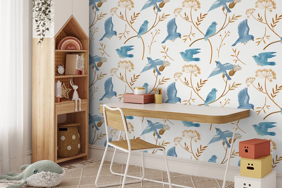 Jouw design Vogel patroon wordt geprint op hoogwaardig duurzaam vliesbehang van premium kwaliteit. Dit stevige behang (200 g/m²) is krasvast, robuust en blijft jarenlang mooi — perfect voor in de kinderkamer, babykamer of speelkamer. Je kunt het behang helemaal op maat laten maken, zodat het ontwerp precies past op jouw muur. Dankzij de gladde afwerking en strakke structuur komt elk detail van het ontwerp perfect tot zijn recht.