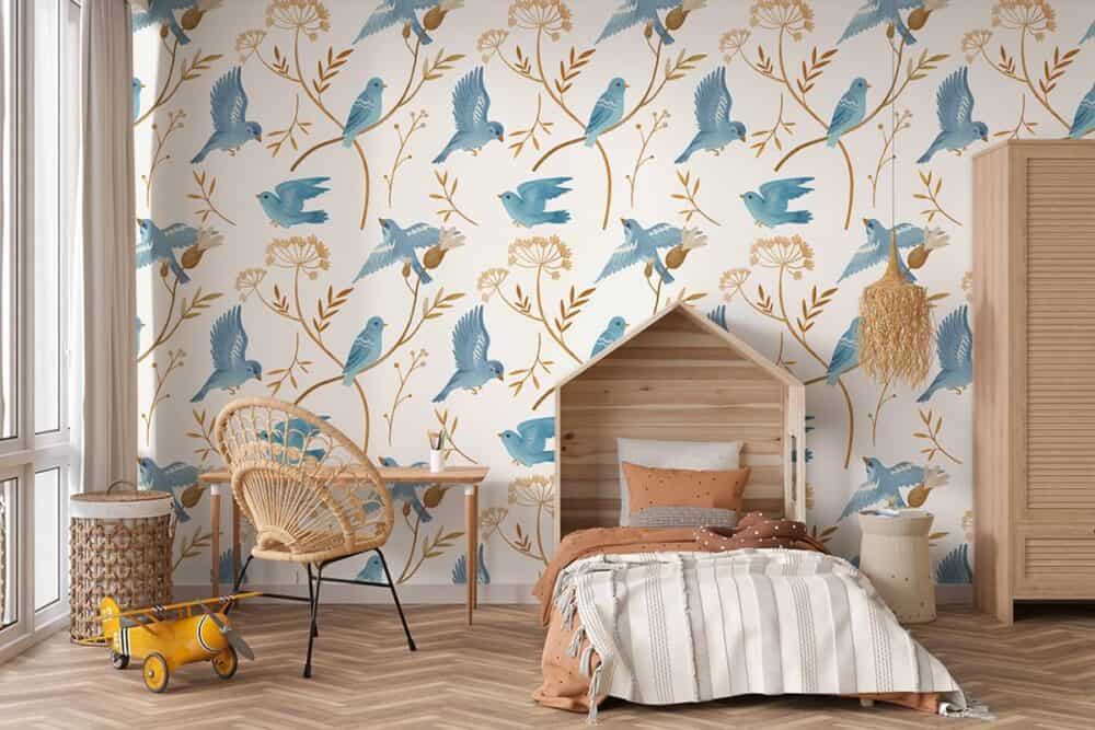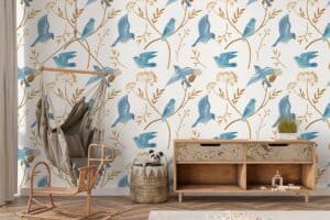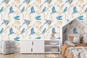 Jouw design Vogel patroon wordt geprint op hoogwaardig duurzaam vliesbehang van premium kwaliteit. Dit stevige behang (200 g/m²) is krasvast, robuust en blijft jarenlang mooi — perfect voor in de kinderkamer, babykamer of speelkamer. Je kunt het behang helemaal op maat laten maken, zodat het ontwerp precies past op jouw muur. Dankzij de gladde afwerking en strakke structuur komt elk detail van het ontwerp perfect tot zijn recht.