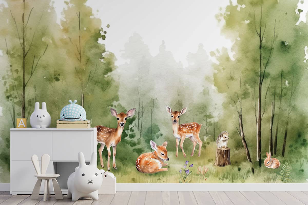 Wil je naast het behang ook een muur in de baby- of kinderkamer verven? Wij hebben alvast 3 Flexa Pure kleuren geselecteerd die perfect passen bij dit fotobehang Vrolijke bosvrienden.