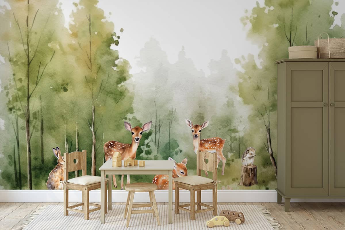 Jouw design Vrolijke bosvrienden wordt geprint op hoogwaardig duurzaam vliesbehang van premium kwaliteit. Dit stevige behang (200 g/m²) is krasvast, robuust en blijft jarenlang mooi — perfect voor in de kinderkamer, babykamer of speelkamer. Je kunt het behang helemaal op maat laten maken, zodat het ontwerp precies past op jouw muur. Dankzij de gladde afwerking en strakke structuur komt elk detail van het ontwerp perfect tot zijn recht.