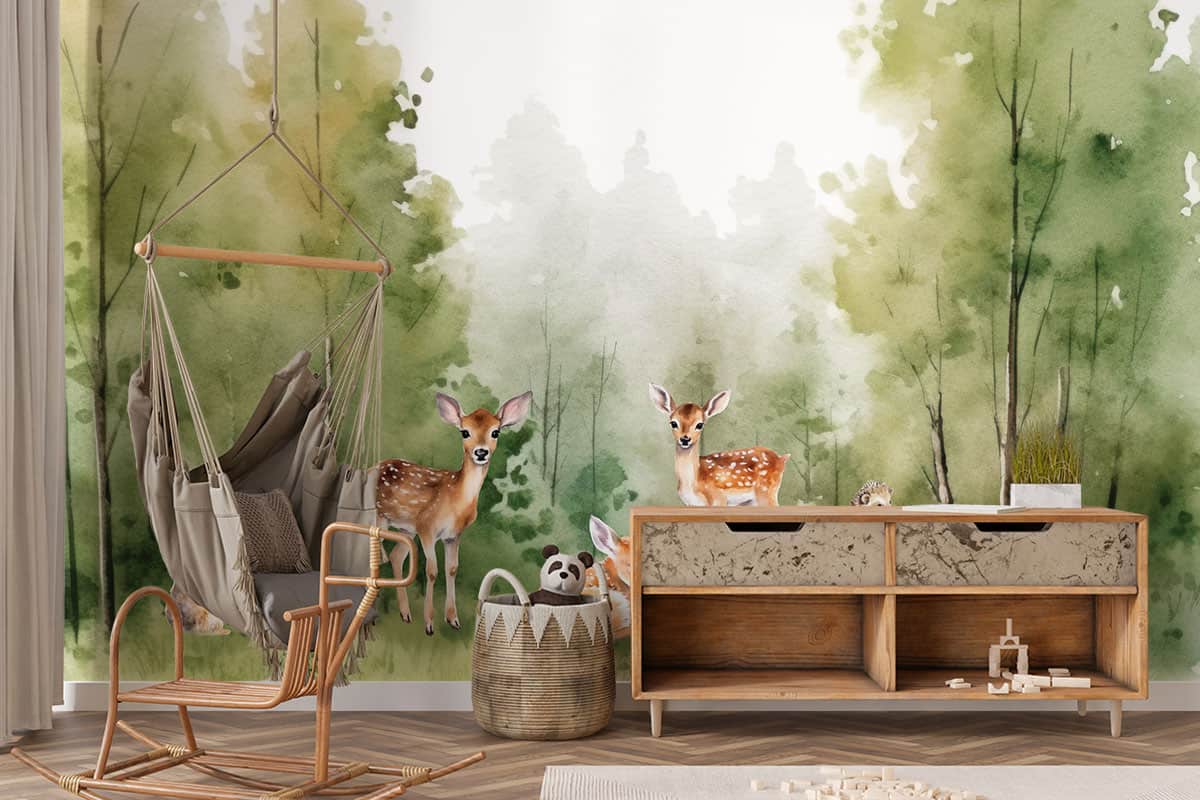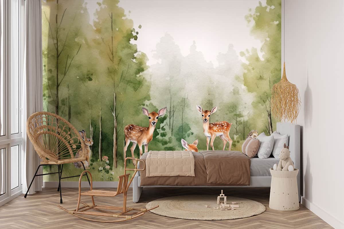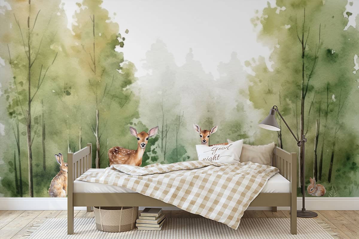 Jouw design Vrolijke bosvrienden wordt geprint op hoogwaardig duurzaam vliesbehang van premium kwaliteit. Dit stevige behang (200 g/m²) is krasvast, robuust en blijft jarenlang mooi — perfect voor in de kinderkamer, babykamer of speelkamer. Je kunt het behang helemaal op maat laten maken, zodat het ontwerp precies past op jouw muur. Dankzij de gladde afwerking en strakke structuur komt elk detail van het ontwerp perfect tot zijn recht.