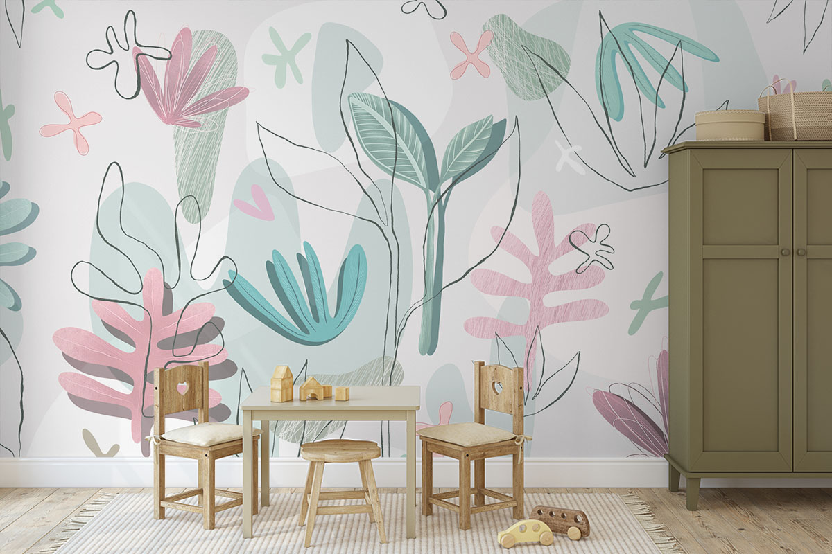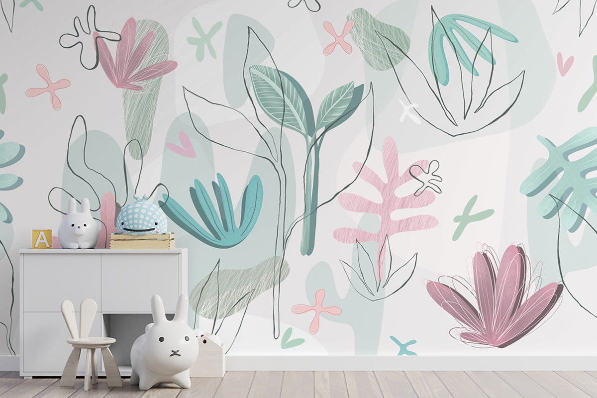 Wil je naast het behang ook een muur in de baby- of kinderkamer verven? Wij hebben alvast 3 Flexa Pure kleuren geselecteerd die perfect passen bij dit fotobehang Vrolijke vormen, roze.