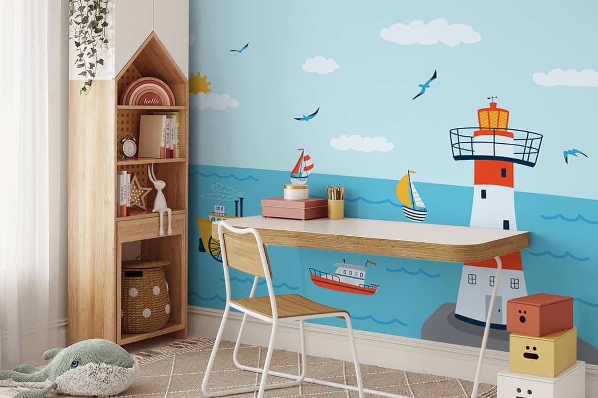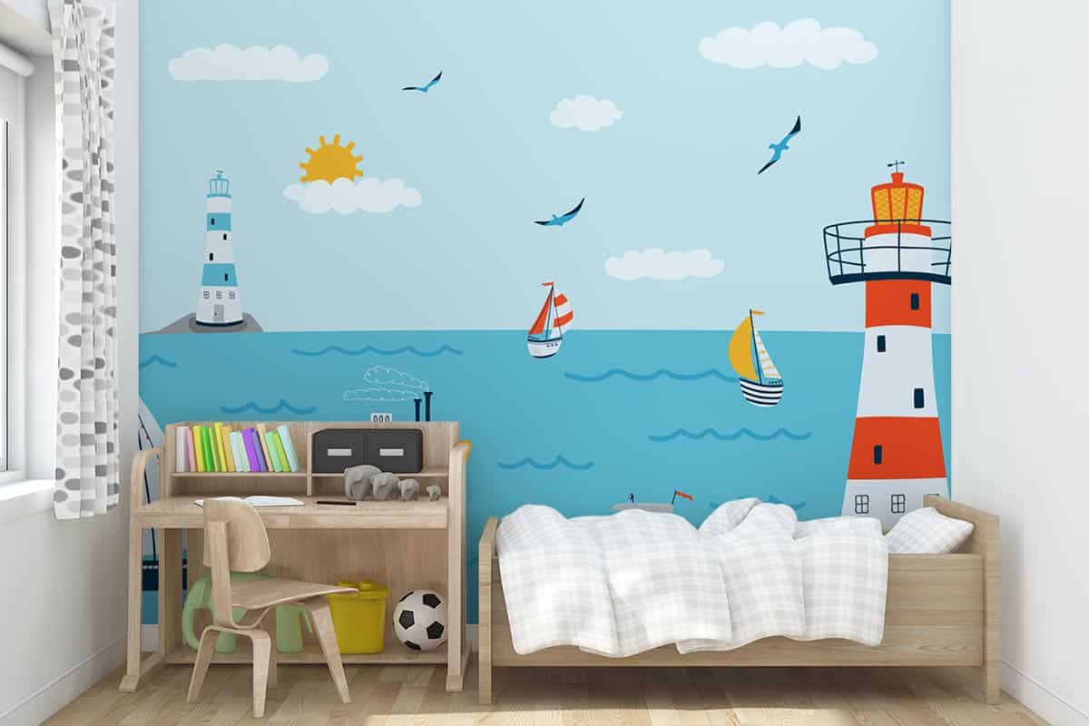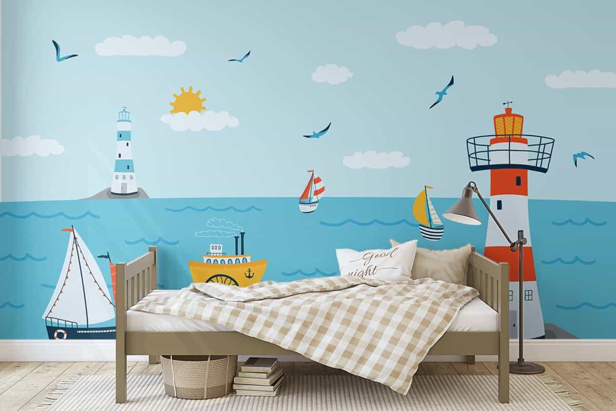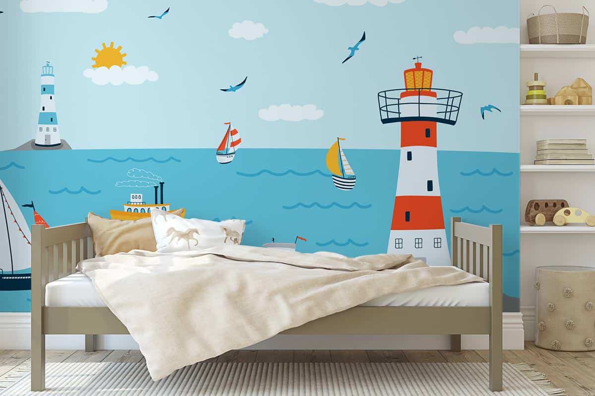 Jouw design Vuurtorens aan zee wordt geprint op hoogwaardig duurzaam vliesbehang van premium kwaliteit. Dit stevige behang (200 g/m²) is krasvast, robuust en blijft jarenlang mooi — perfect voor in de kinderkamer, babykamer of speelkamer. Je kunt het behang helemaal op maat laten maken, zodat het ontwerp precies past op jouw muur. Dankzij de gladde afwerking en strakke structuur komt elk detail van het ontwerp perfect tot zijn recht.