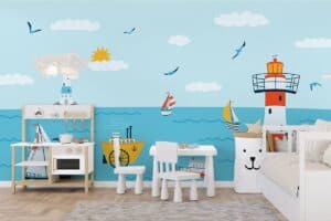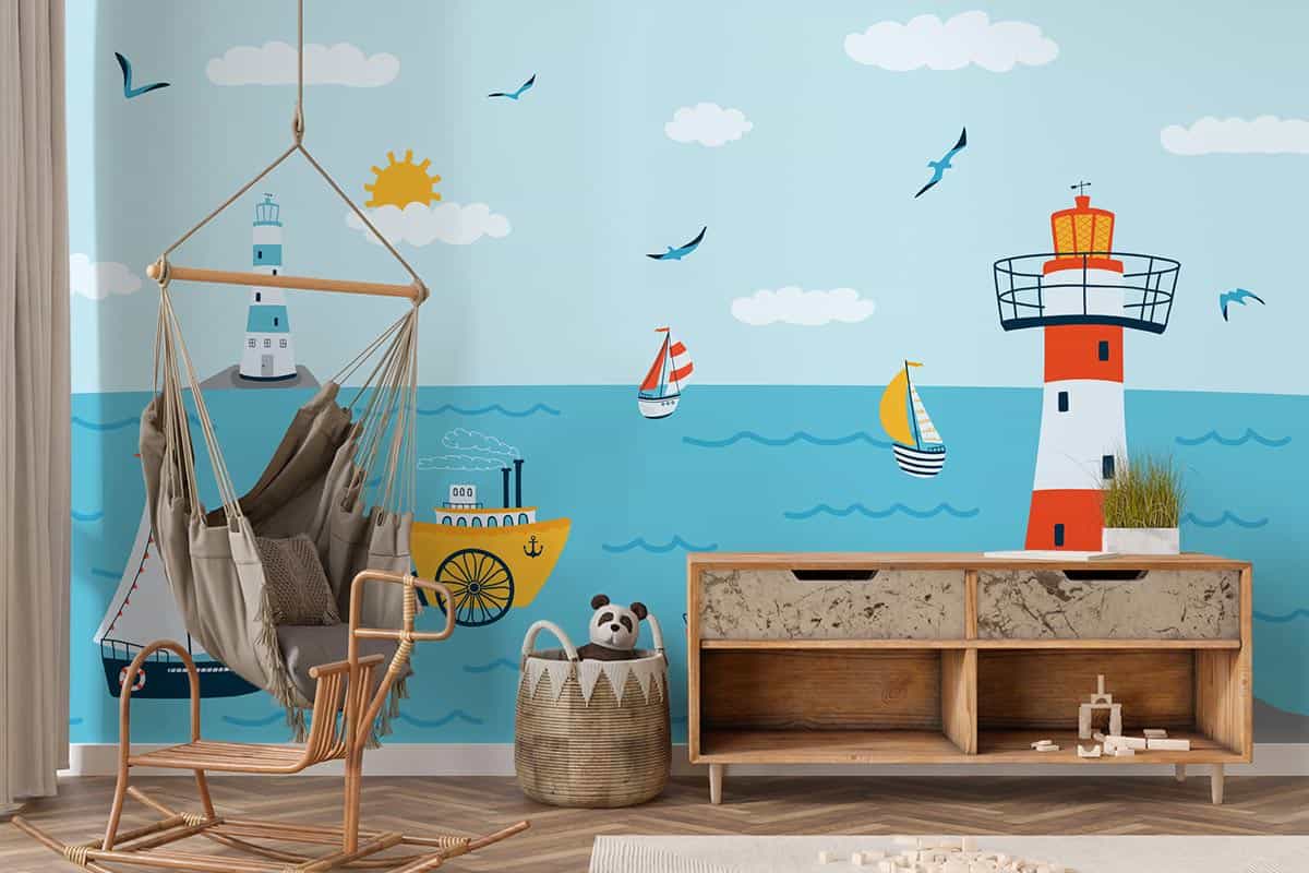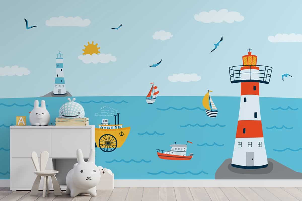 Jouw design Vuurtorens aan zee wordt geprint op hoogwaardig duurzaam vliesbehang van premium kwaliteit. Dit stevige behang (200 g/m²) is krasvast, robuust en blijft jarenlang mooi — perfect voor in de kinderkamer, babykamer of speelkamer. Je kunt het behang helemaal op maat laten maken, zodat het ontwerp precies past op jouw muur. Dankzij de gladde afwerking en strakke structuur komt elk detail van het ontwerp perfect tot zijn recht.