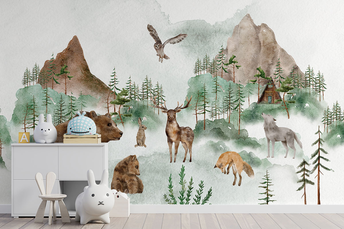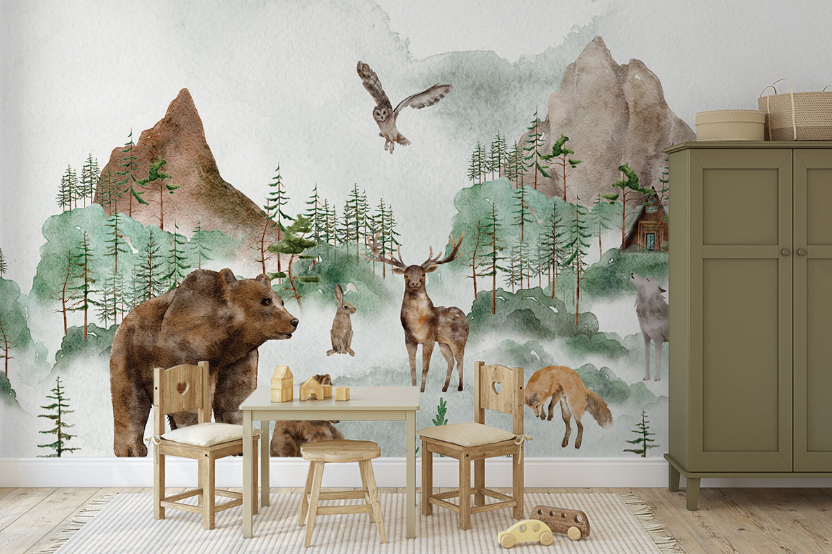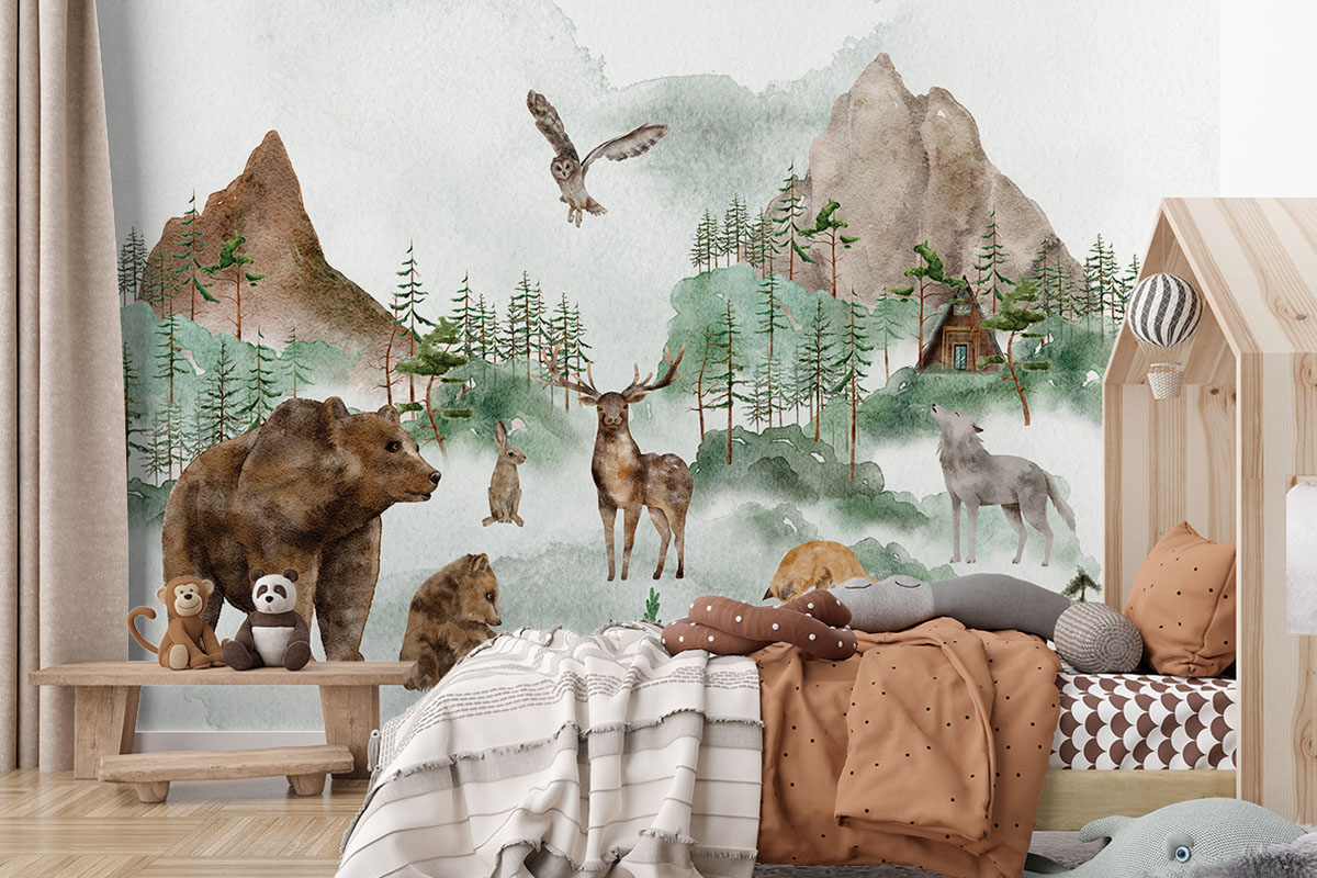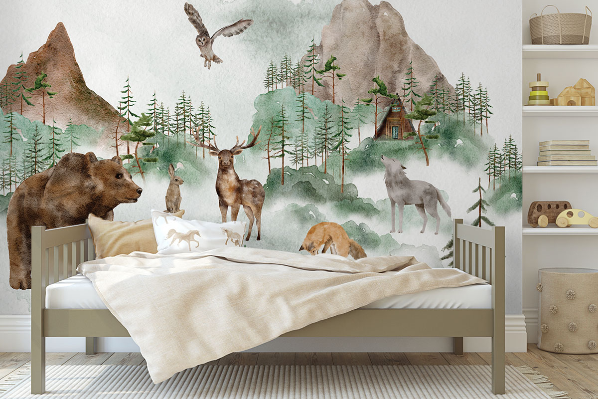Jouw design Wilde dieren in de bergen wordt geprint op hoogwaardig duurzaam vliesbehang van premium kwaliteit. Dit stevige behang (200 g/m²) is krasvast, robuust en blijft jarenlang mooi — perfect voor in de kinderkamer, babykamer of speelkamer. Je kunt het behang helemaal op maat laten maken, zodat het ontwerp precies past op jouw muur. Dankzij de gladde afwerking en strakke structuur komt elk detail van het ontwerp perfect tot zijn recht.